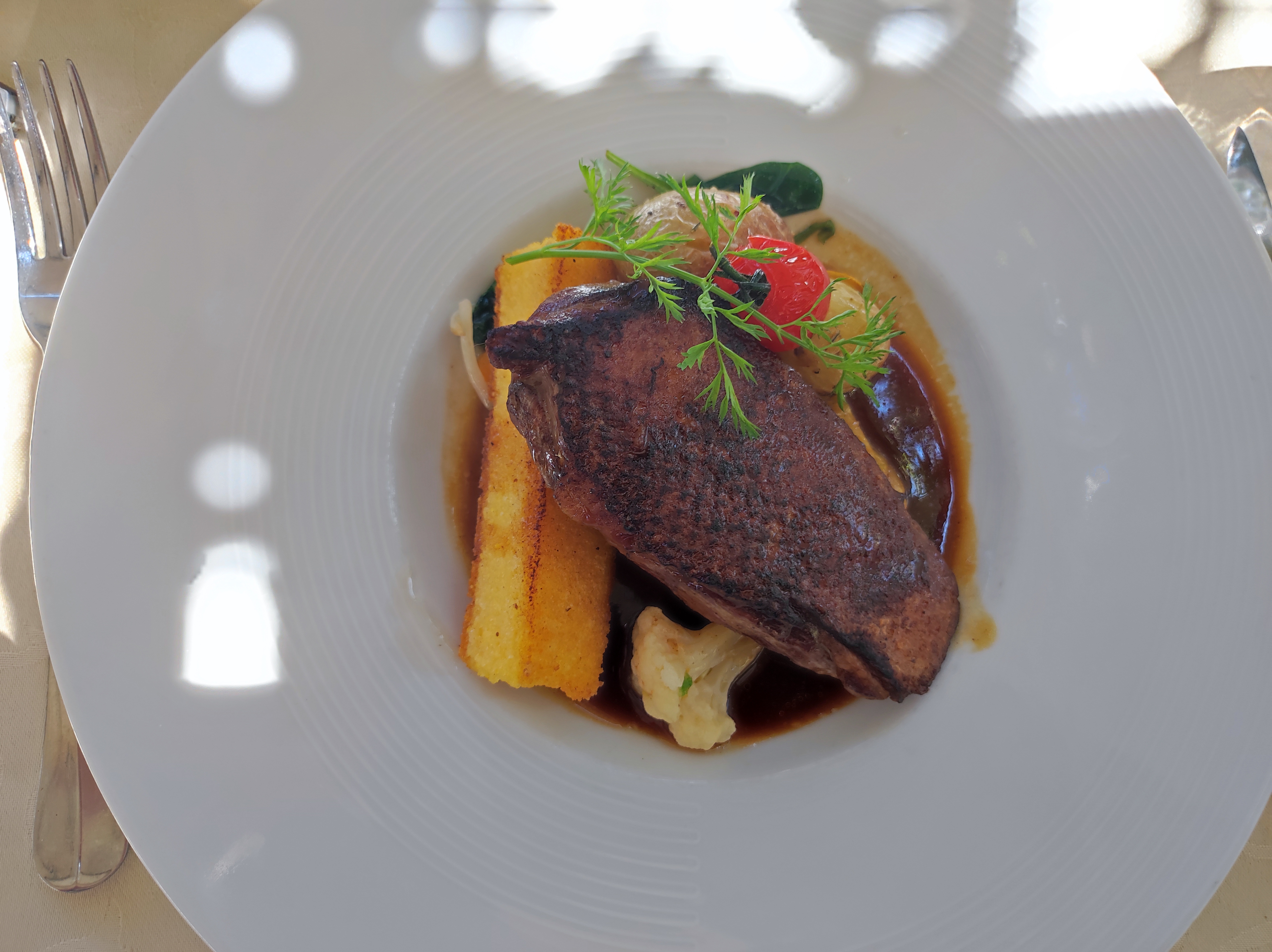 Bonne cuisine mais frites industrielles, dommage pour un maître restaurateur. L'eau payante et hors de prix sale encore plus l'addition. Gros appétit s'abstenir. Serveuse très souriante, endroit agréable, joli et raffiné.