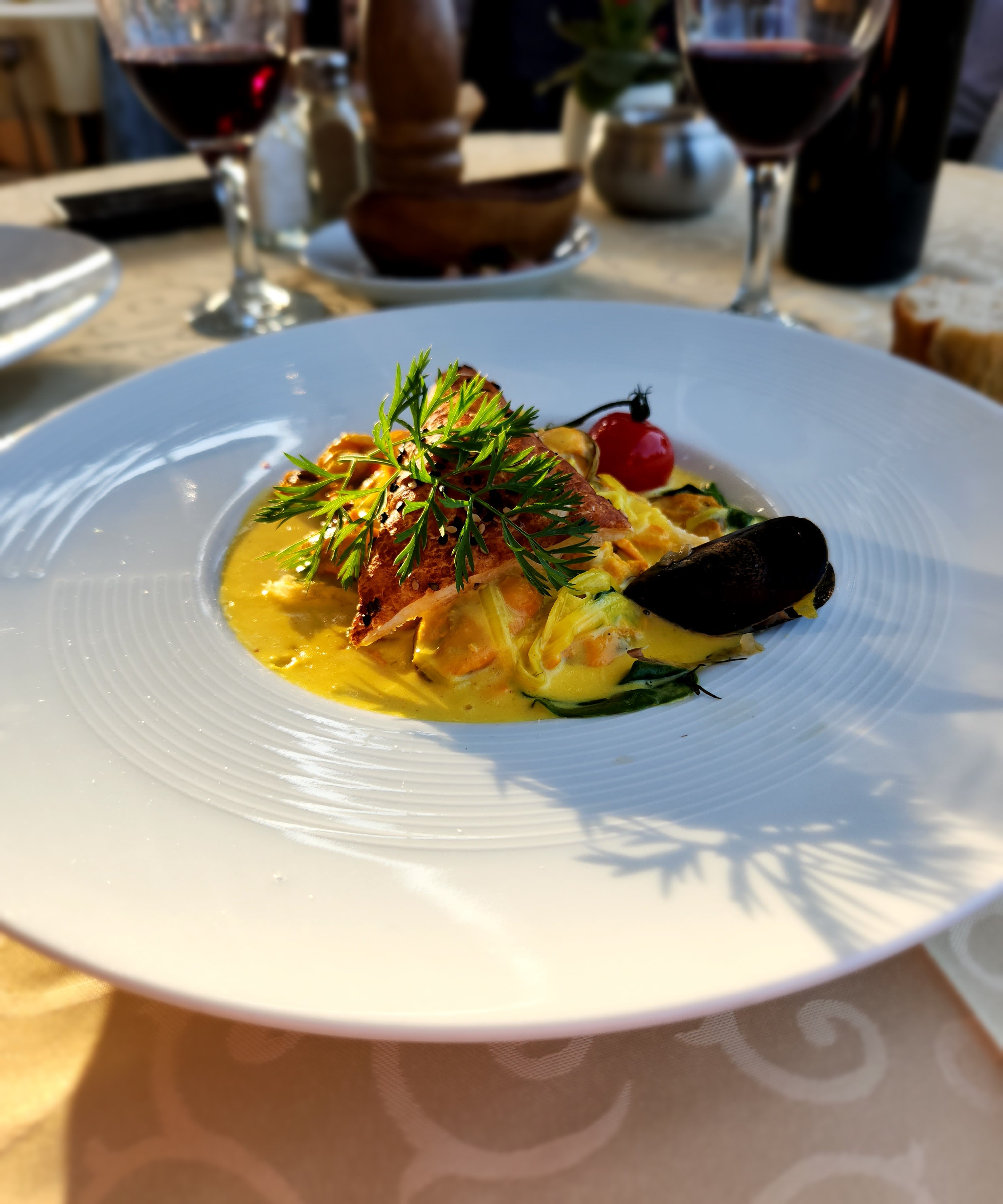 Excellent accueil de la patronne pour commencer notre soirée dans son restaurant. Ensuite, le serveur était au petits soin malgré une terasse pleine à craquer ! Excellent cocktail, champagne / pêche fait maison. Les METS ETAINT EXCELLENTS ( moules au safran délicieuses!). La terrasse est très jolie et offre une belle vue sur le golf de Saint-Tropez. Nous reviendrons !
