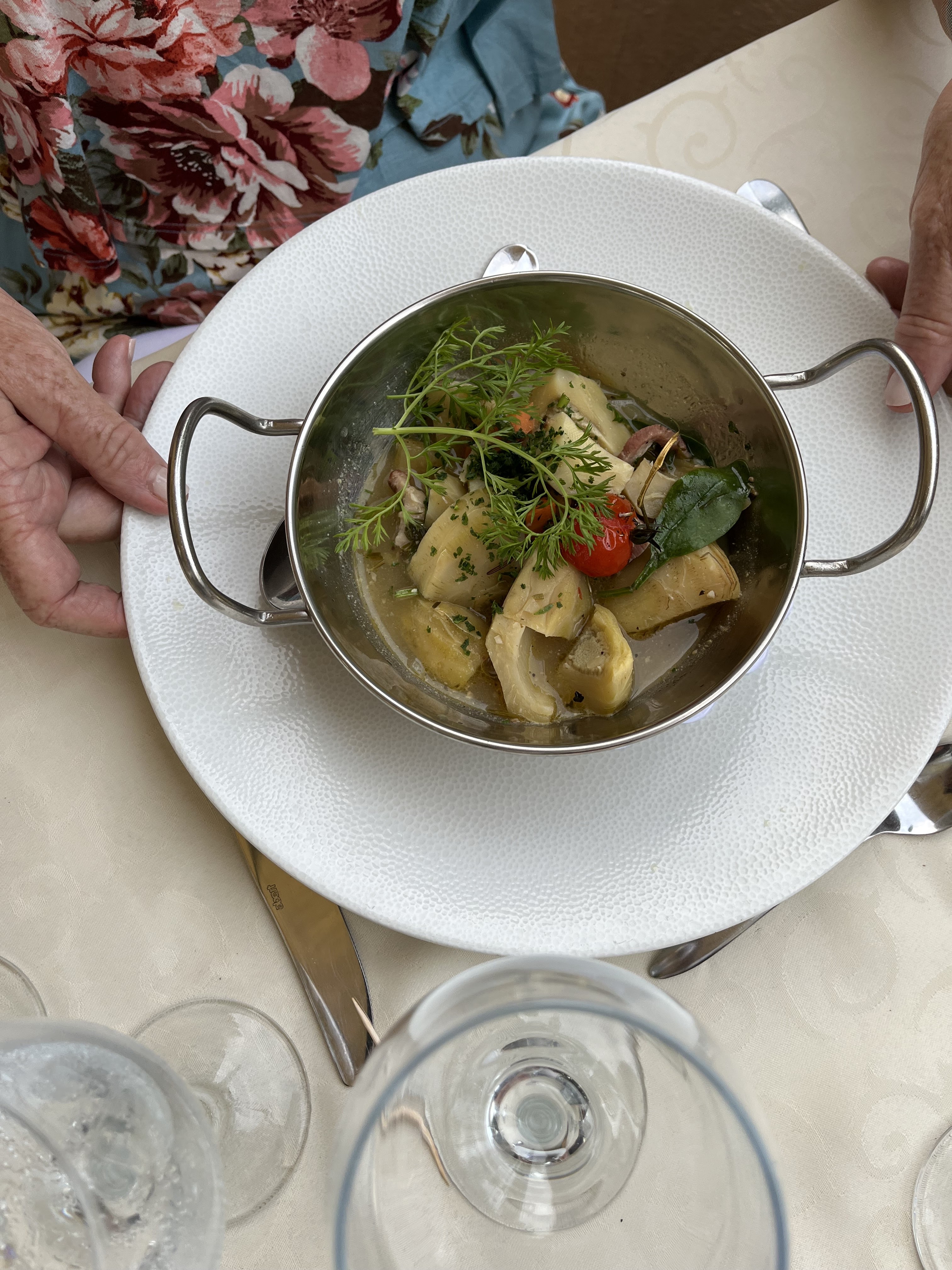 Nous avons voyagé en grand groupe de 10 personnes du Royaume-Uni et des États-Unis. Installation pour déjeuner dans ce charmant restaurant avec une vue magnifique. Le service était impeccable et sympathique. Mon plat, un délicieux gnocchi à la truffe noire, était l'un des meilleurs repas que j'ai jamais mangé. Le vin et les cuisses de grenouilles étaient également parfaits. Tout le monde est reparti souriant et heureux. Quel régal dans cette petite ville.