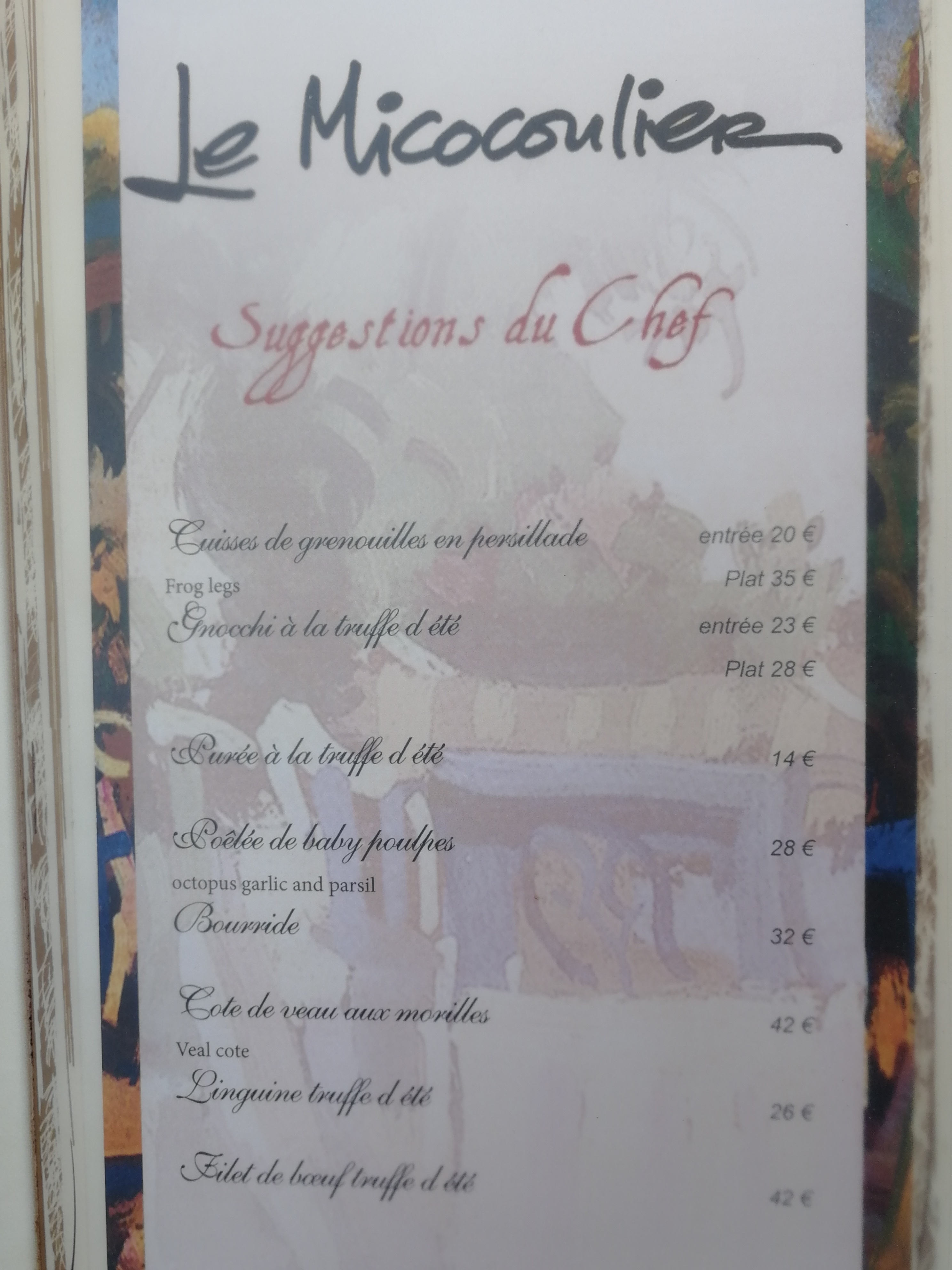 Cher Monsieur Lambilliotte C'est avec beaucoup de fierté que nous lisons votre commentaire qui nous va droit au cœur et que nous ne manquerons pas de partager avec l'ensemble de notre équipe. Nous sommes ravis d'avoir pu régaler vos papilles. Nous nous ferons un plaisir de vous accueillir à nouveau dès votre prochaine envie de profiter en famille de Gassin :) En attendant... vous pouvez nous suivre sur Facebook #lemicocoulier Bien cordialement