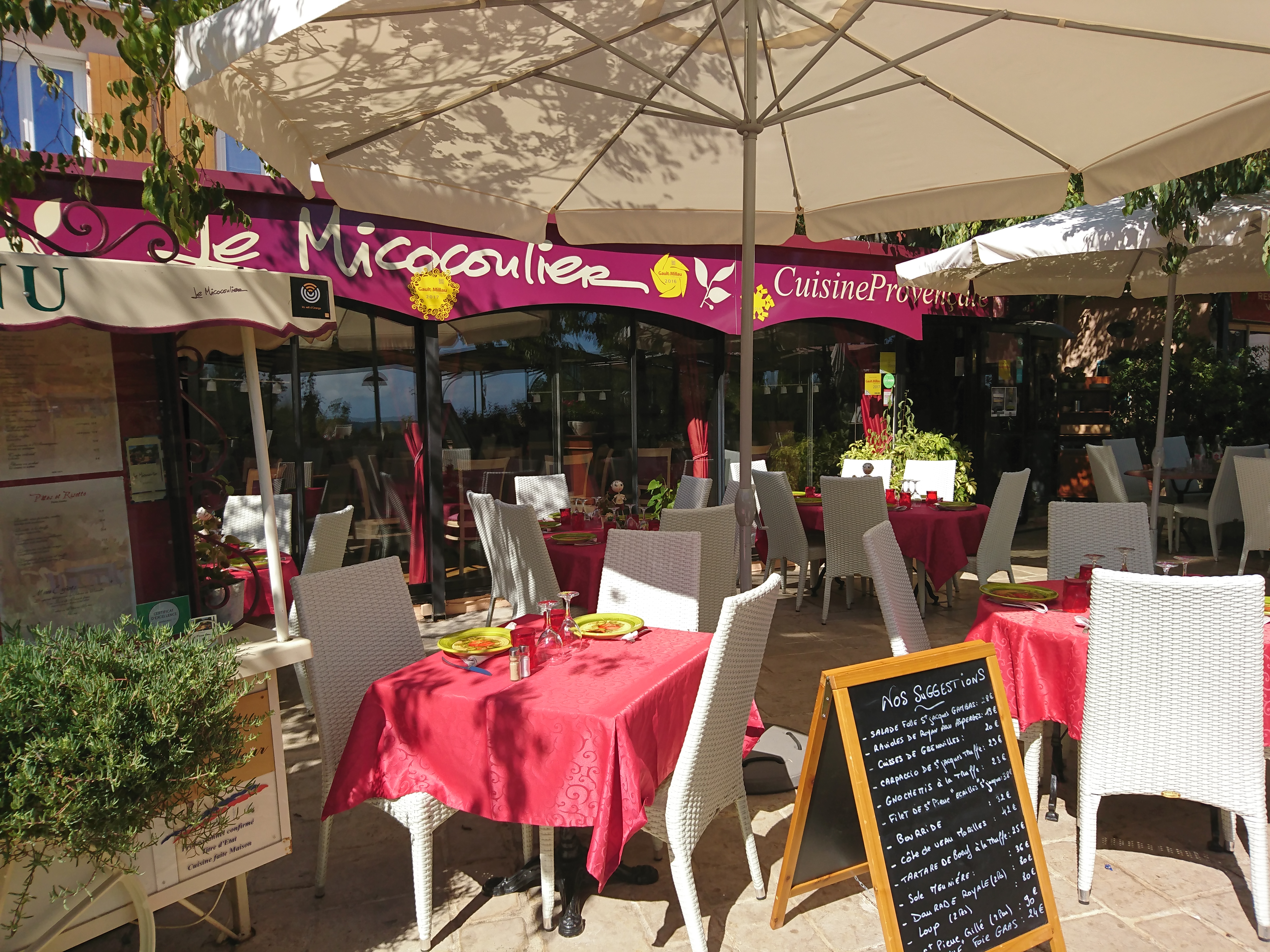 Bonjour Dorlane Merci pour votre excellente note. Nous sommes ravis de lire que vous avez apprécié notre restaurant à Gassin. Nous ne manquerons pas de communiquer vos magnifiques compliments à l'ensemble de nos équipes. Au plaisir de vous accueillir la saison prochaine ! Le Micocoulier
