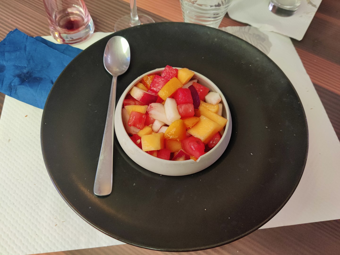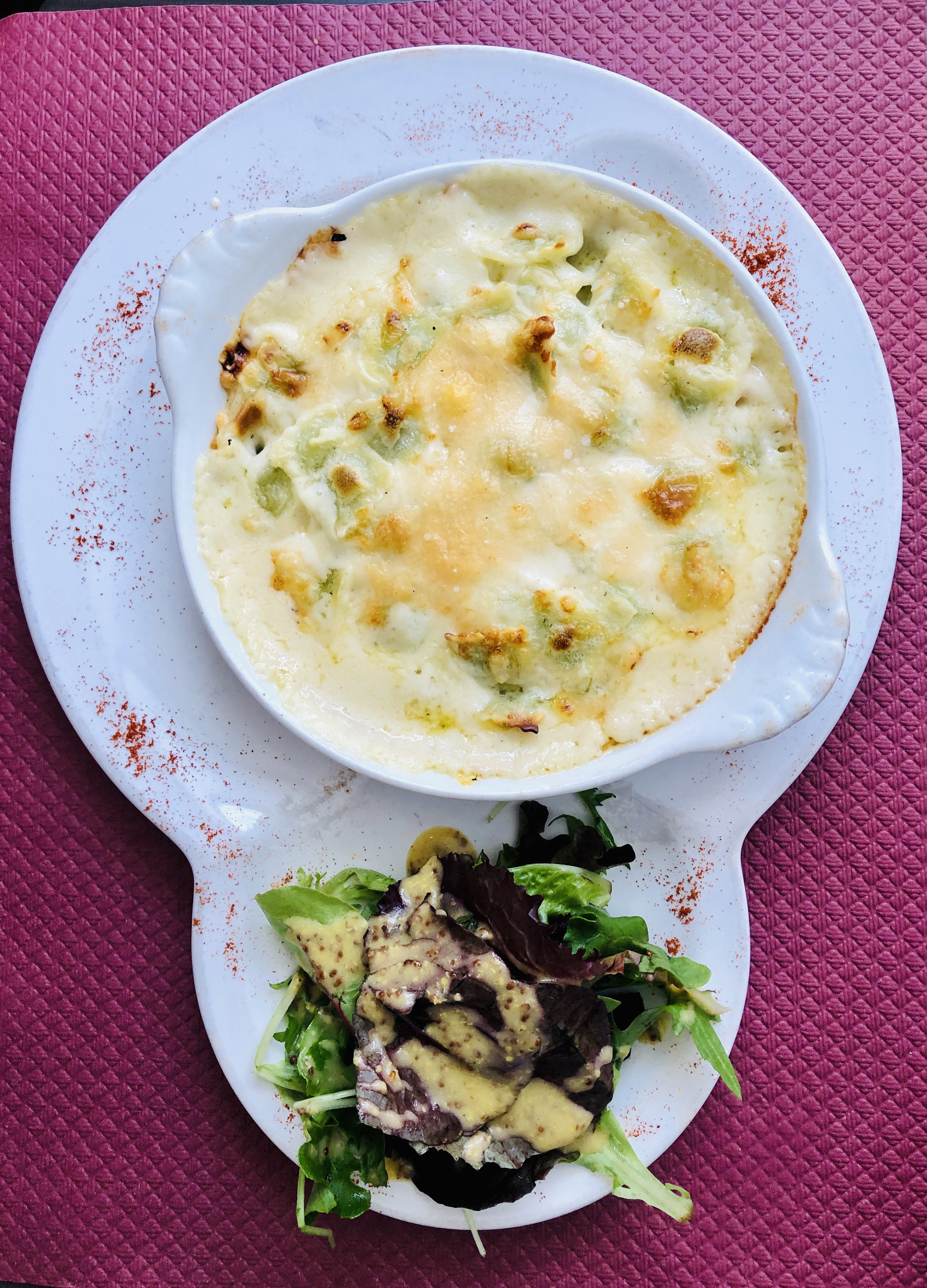 Bon accueil serviable et une carte variée de produits frais. Dommage pour la pomme au four servie froide et sans saveur que j'attendais rôtie sur peau et chaude (dessert sans lactose ni gluten).