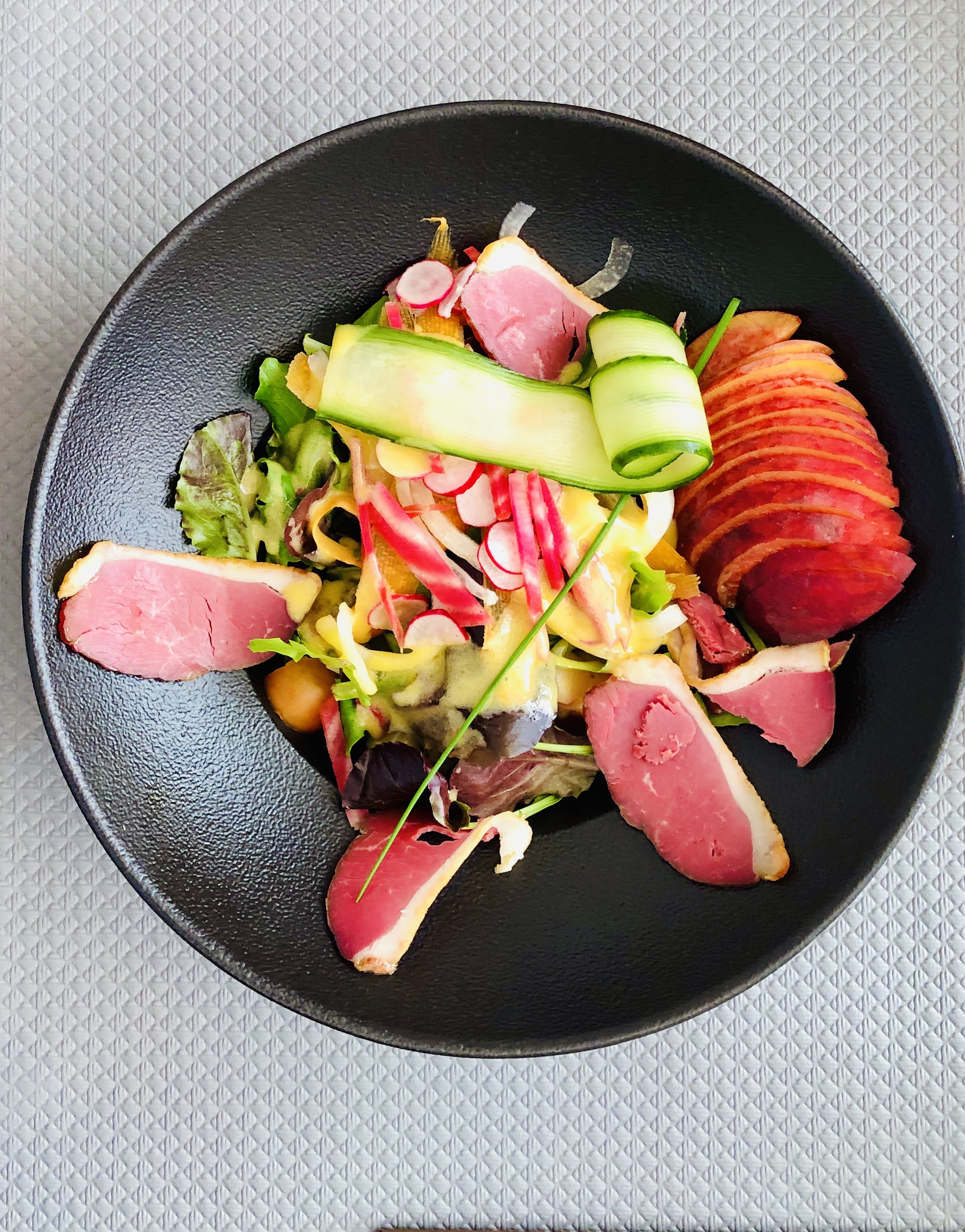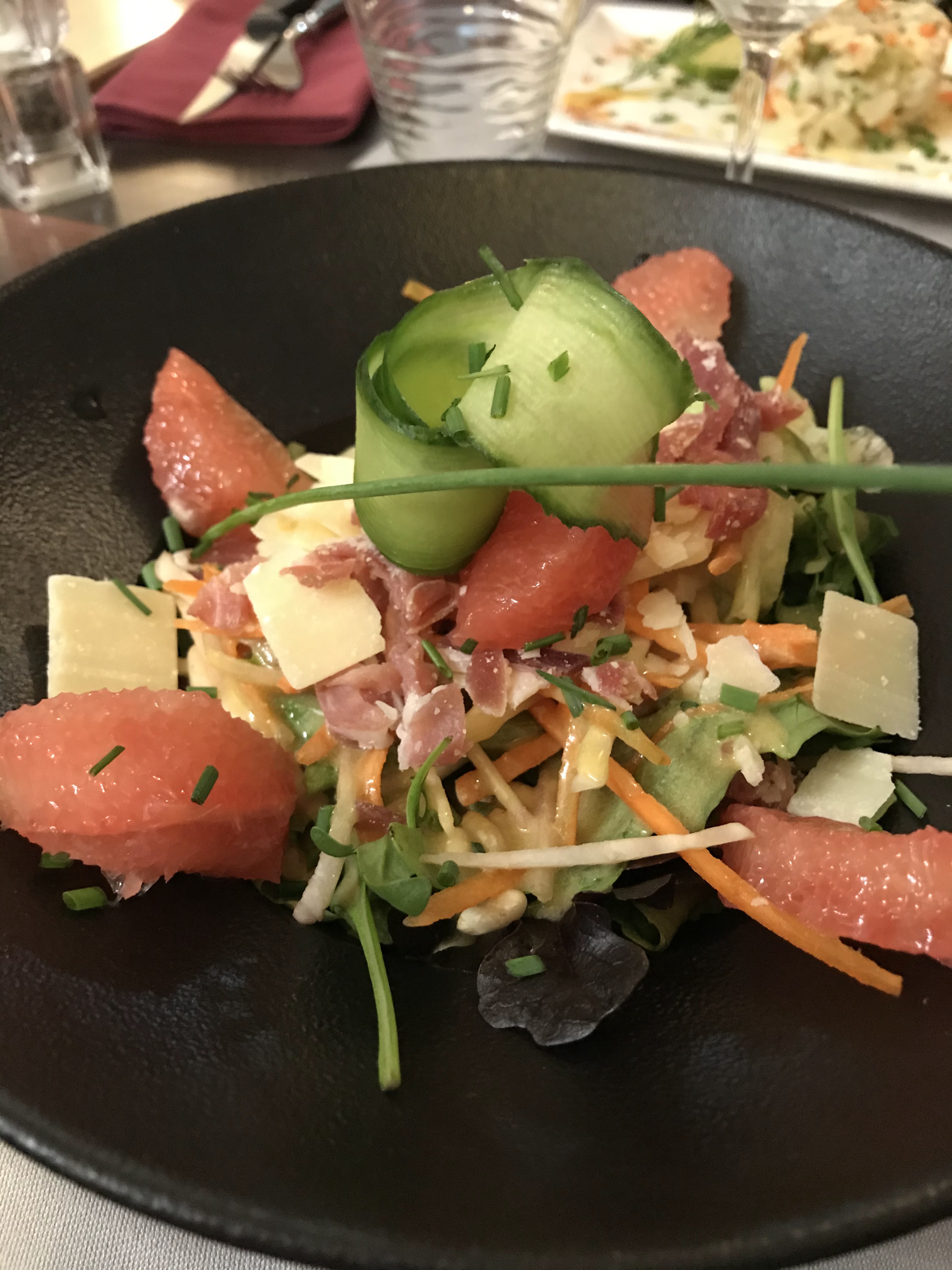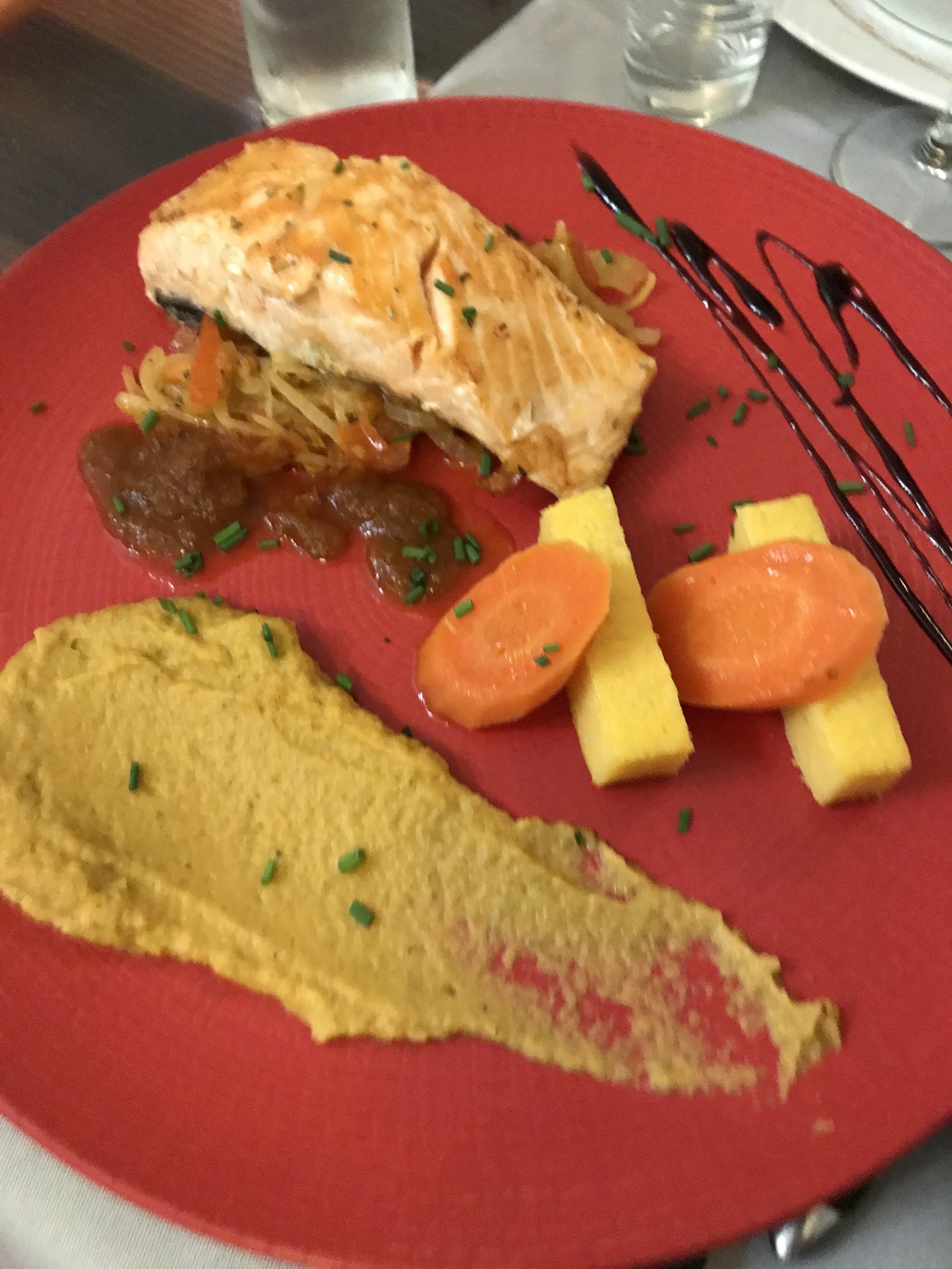 Déçu car choisi ce restaurant par rapport aux avis . Salade du chef en entrée avec olives mais pas de Nyons car pas bonnes du saumon et les couverts pas changés pour manger la souris d'agneau qui elle était très bonne . Par contre le moelleux pas terrible du tout et le cheesecake béton. Les avis sont à revoir.