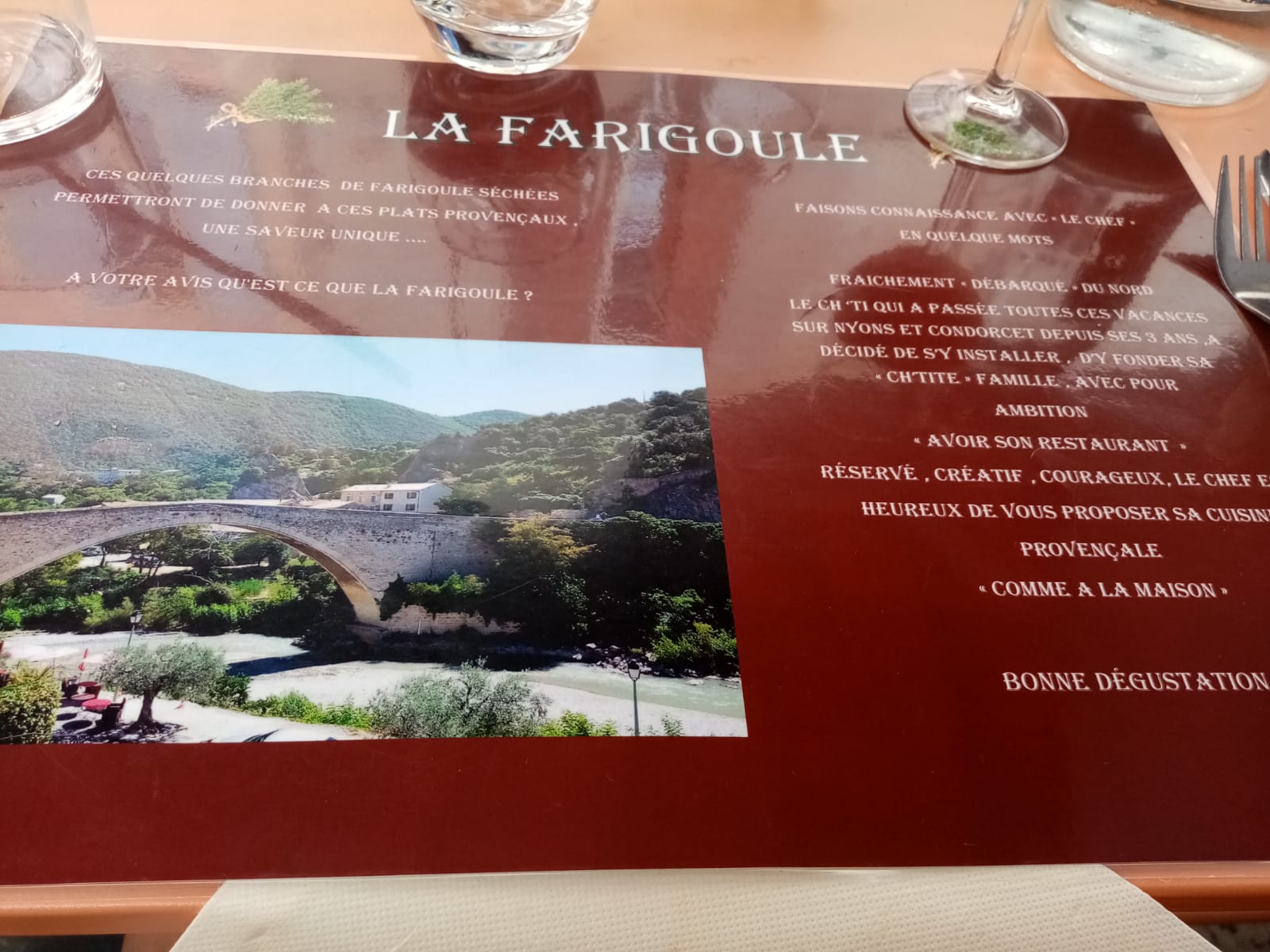 Restaurant à l'enseigne LA FARIGOULE spécialités provençales de qualité servies en salle ou en terrasse, très bon accueil, on est tout de suite à l'aise, je recommande sans hésiter !!