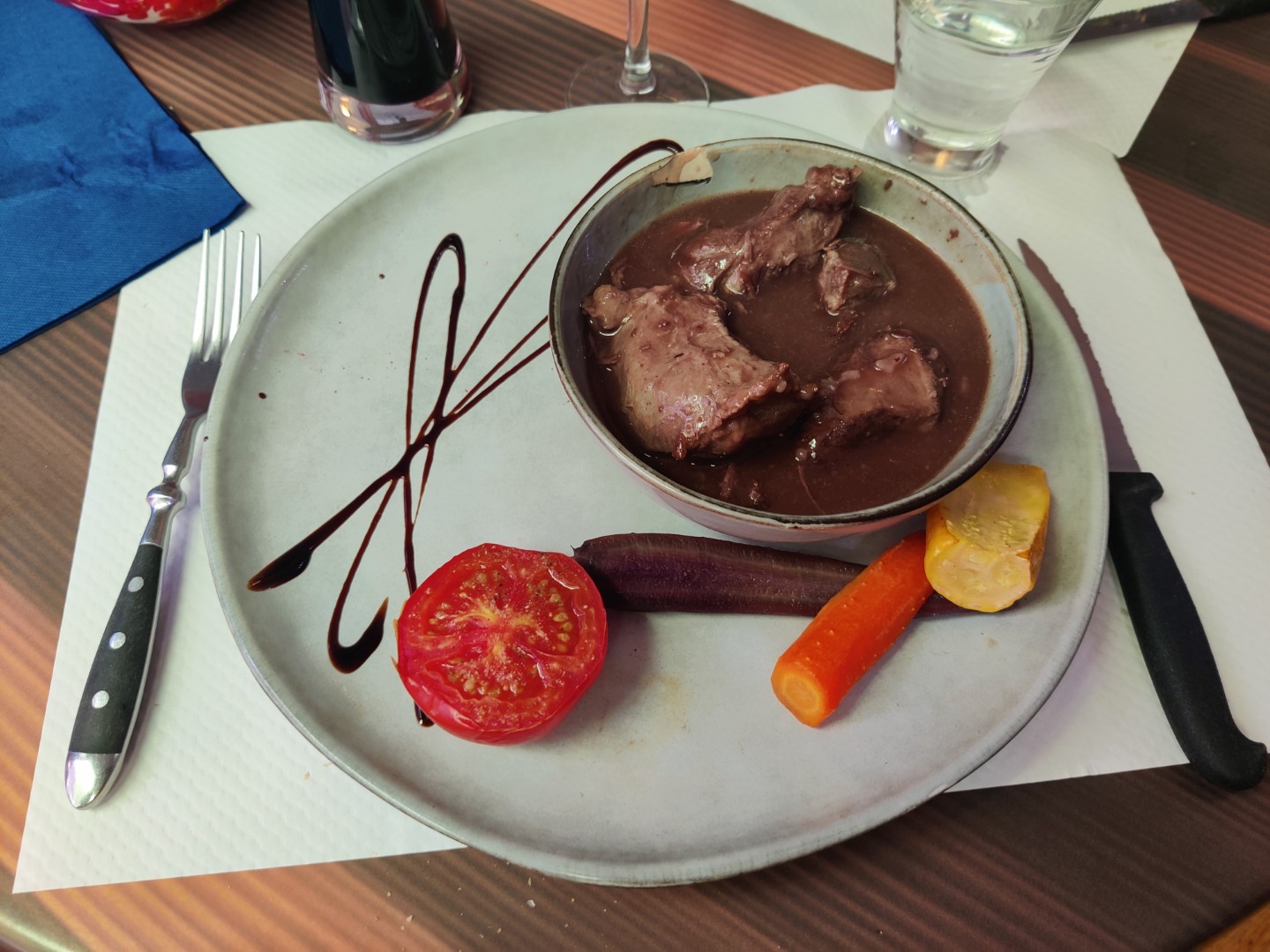 Dernière soirée de nos vacances, sur le chemin de retour d'Italie. Agréable accueil, dans ce restaurant familial (le fils est aux fourneaux) Des recettes bien pensées et cuisinées. Pièce de bœuf tendre, sauce complémentaire avec du romarin, travers de porc avec sauce barbecue maison, accompagnements originaux avec des produits locaux. Très bon rapport qualité prix. Nous recommandons vivement.