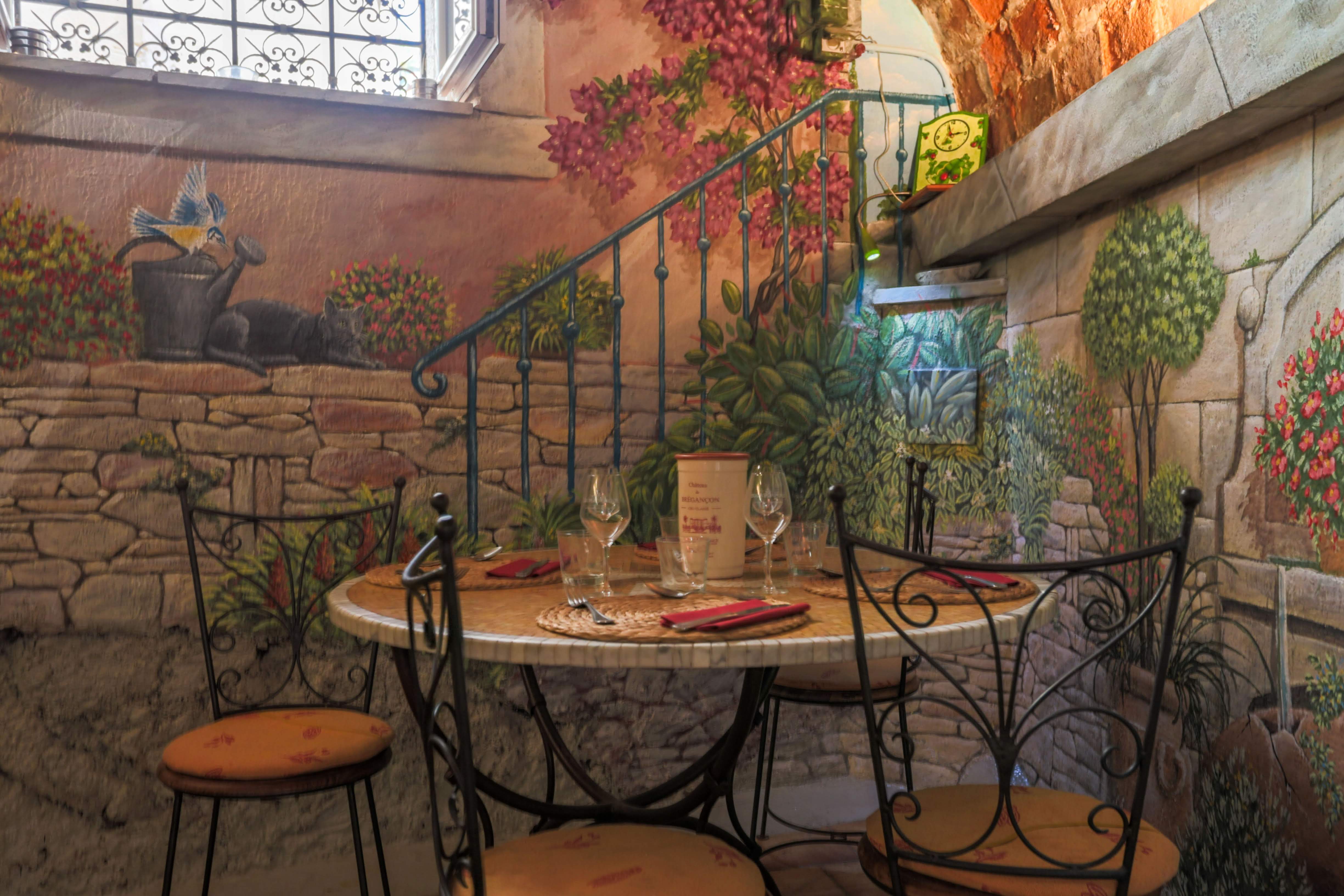 joli restaurant situé au vieux village de Bormes les mimosas(près de la poste du village)le chef travaille avec des petits producteurs locaux,il exerce ses talents devant ses clients,le service est assuré par l'épouse du chef,a l'écart de tout flux touristique ,Parmit une des meilleurs table du village d'après les locaux,et n'oublions pas ce dècor de salle et façade fait par l'artiste local alanpeo a voir lors de passage à Bormes les Mimosas,il est prudent de rèserver..............