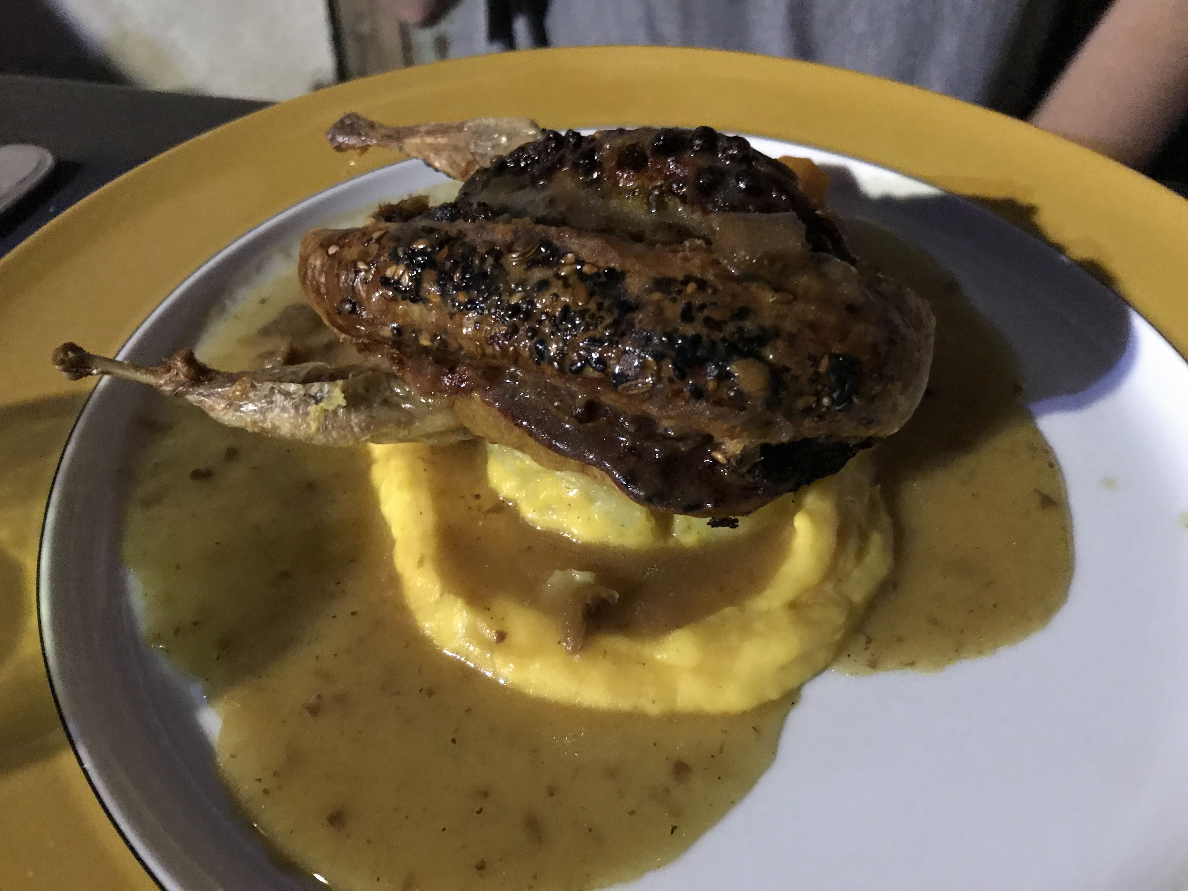 Sans le vouloir et à notre grand bonheur, nous avons constaté que le restaurant avait était privatisé rien que pour nous. Effectivement nous étions en basse saison donc aucun jugement là-dessus. Sociables et accueillants nous nous laissons embarqué par la bonne augure de cette soirée et de ce repas. En tant qu’épicuriens, nous somme conquis par la présentation épurée des plats. C’était sans compter la petite surprise négative de voir une caille dorée d’aspect extérieur mais CRUE à l’intérieur.. Une fois de plus aucun jugement, cela peut arriver. Pour un restaurant digne du prix que nous avons payé, nous nous attendions à avoir un nouveau plat.. Notre attente n’étant pas exocée, la caille remise au four et resservie dans l’assiette. Pour finir ce commentaire ne serait pas ici si nous avions eu un moindre petit geste commercial mais malheureusement ça n’a pas été le cas. 118 euros pour deux plats, deux desserts et une bouteille de vin pas de problèmes quand ça le mérite, en l’occurrence ce n’était pas le cas. Restaurant correct mais mauvais rapport qualité prix.
