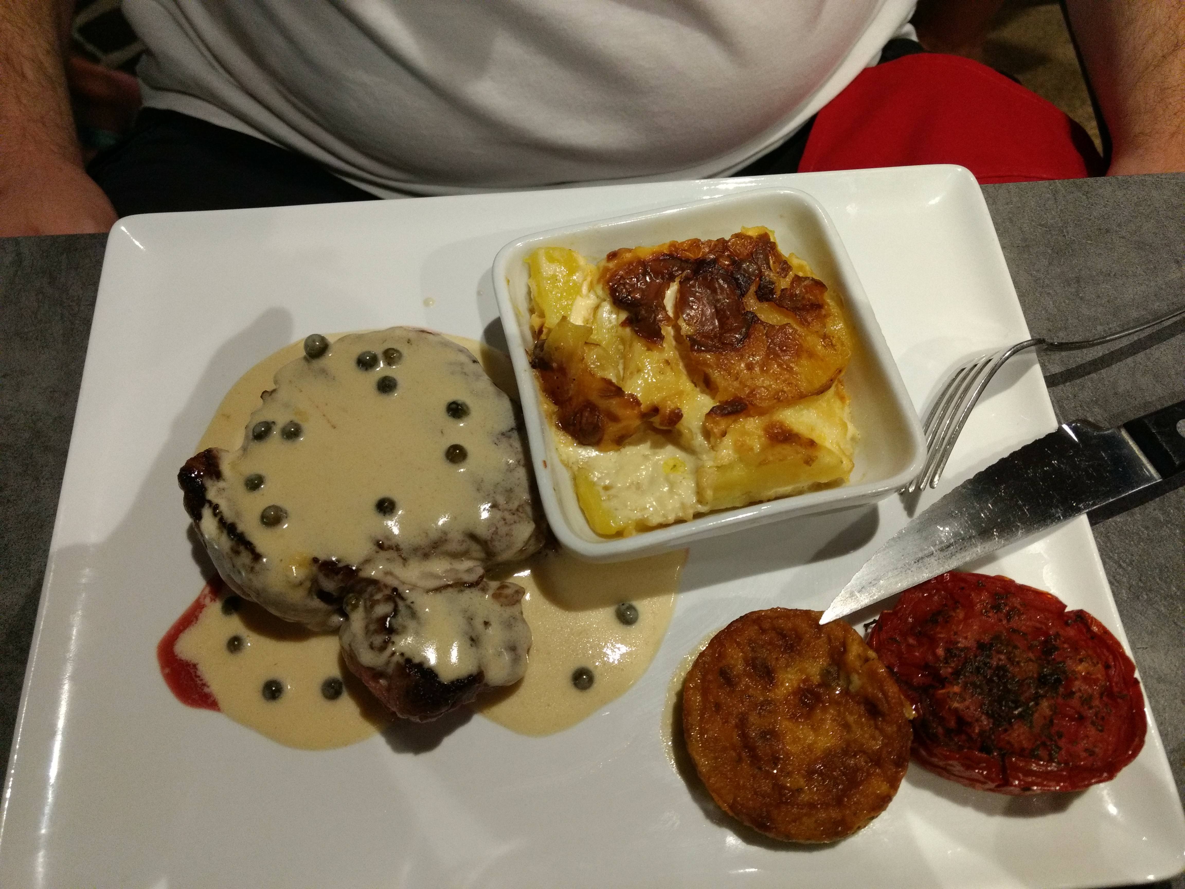 Cher pour ce que c’est ! Le magret de canard ça pouvait aller, mais le filet de loup avec un riz pas terrible et un plat qui était trop sec !! Et ne parlons pas des desserts METRO, complètement insipides.
