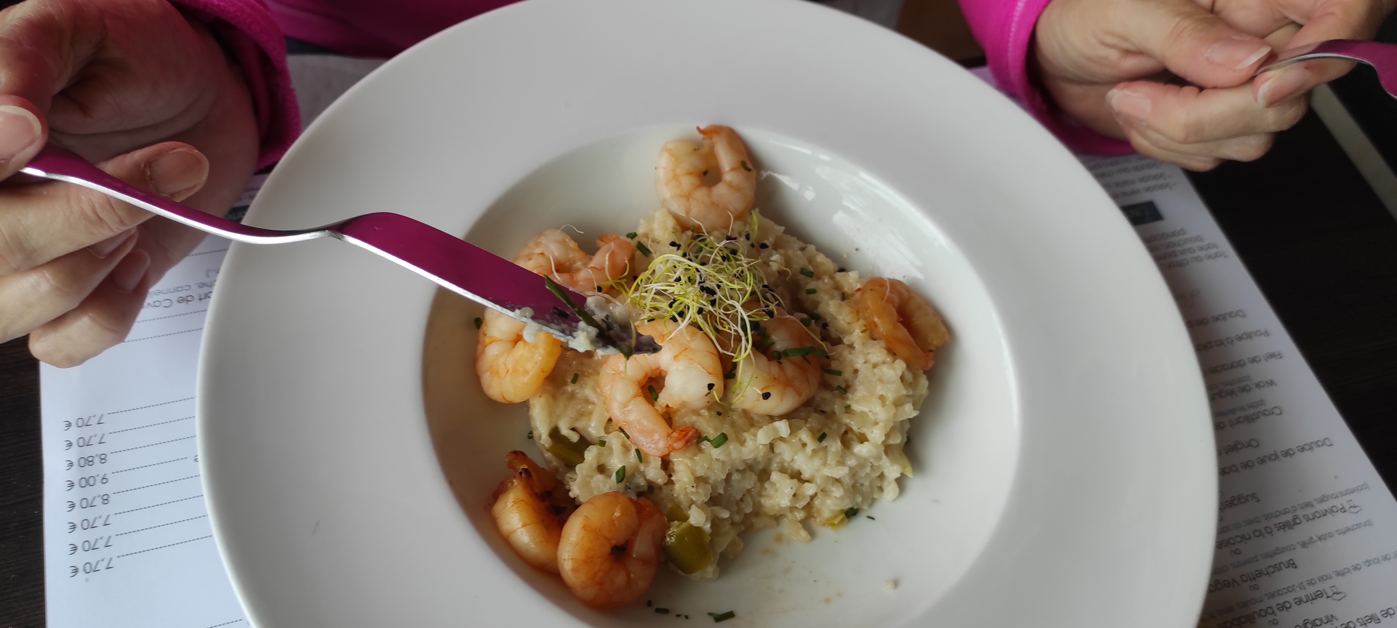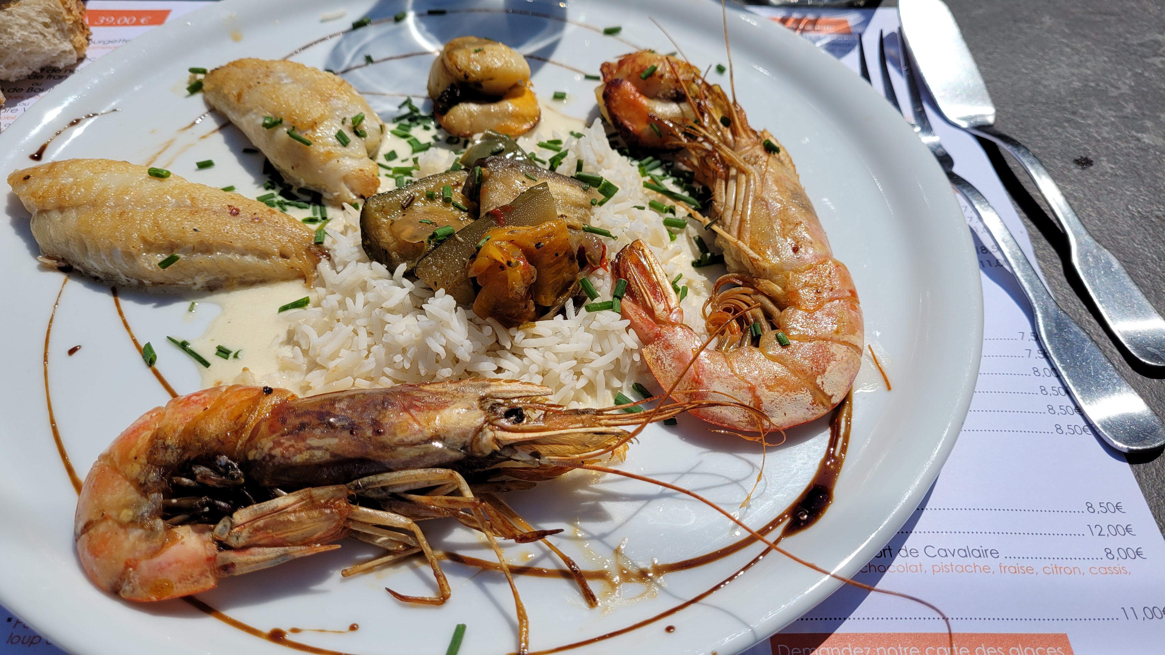 Langoustines pas cuites poisson pas très frais riz surcuit. Dommage