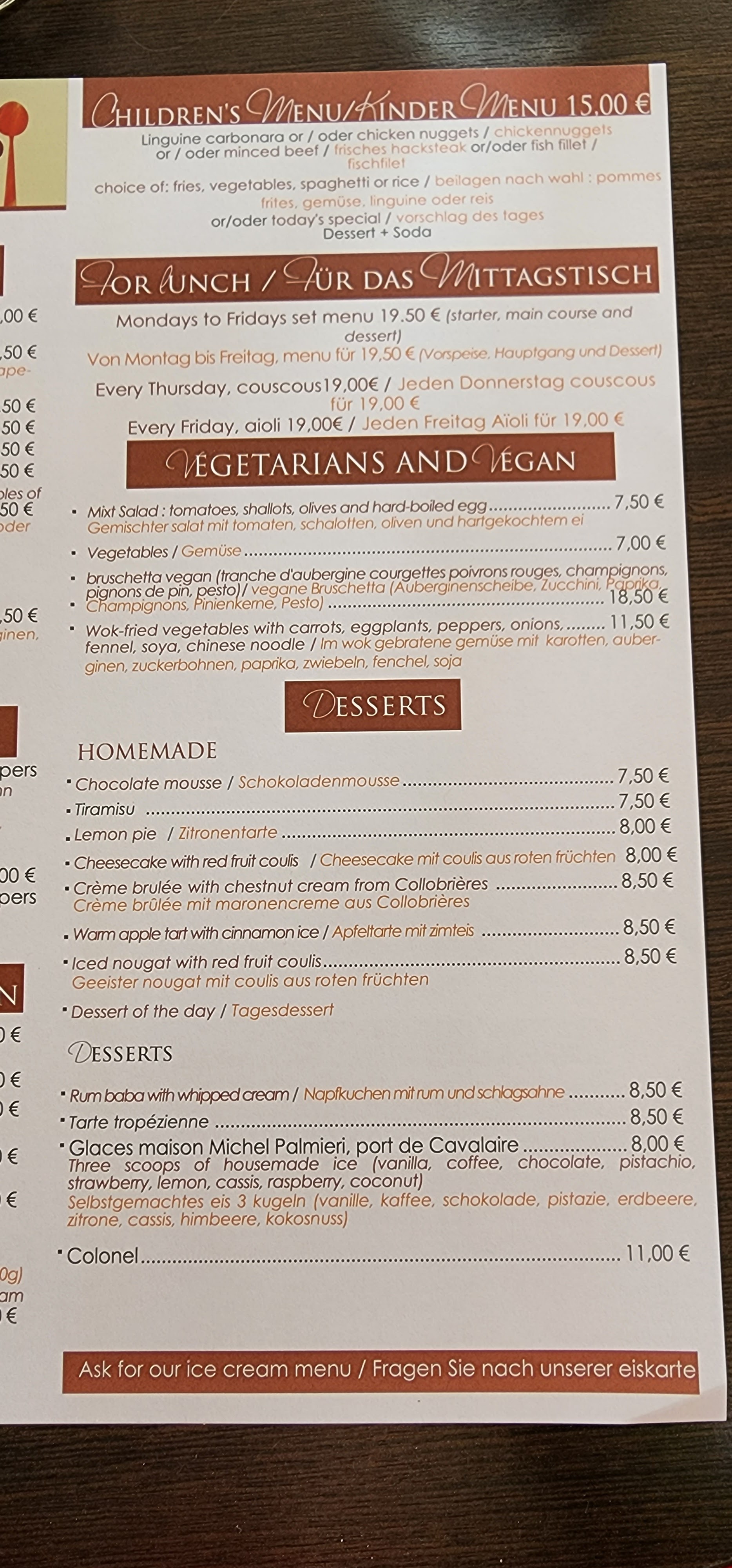 Super déjeuner hier. Le menu du jour était délicieux pour moins de 20 euros, le couscous aussi. Prix corrects. Serveur super sympa, agréable, avec le sourire et tout le monde était masqué. Chose rare dans le coin malheureusement. Restaurant pas surchargé. Nous reviendrons vite