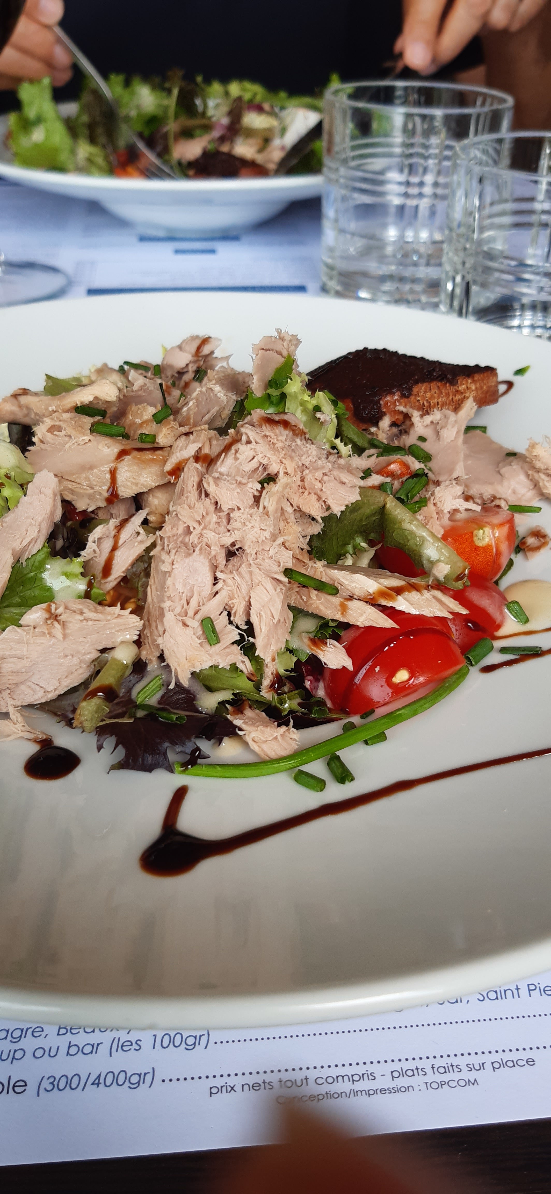 Belle découverte, menu du jour tres bon : salade niçoise et saumon sauce citronnée.....la bouillabaisse des convives a coté a fait envie aussi!....dans compter la vue magnifique et je vois de belles photos avec VIP