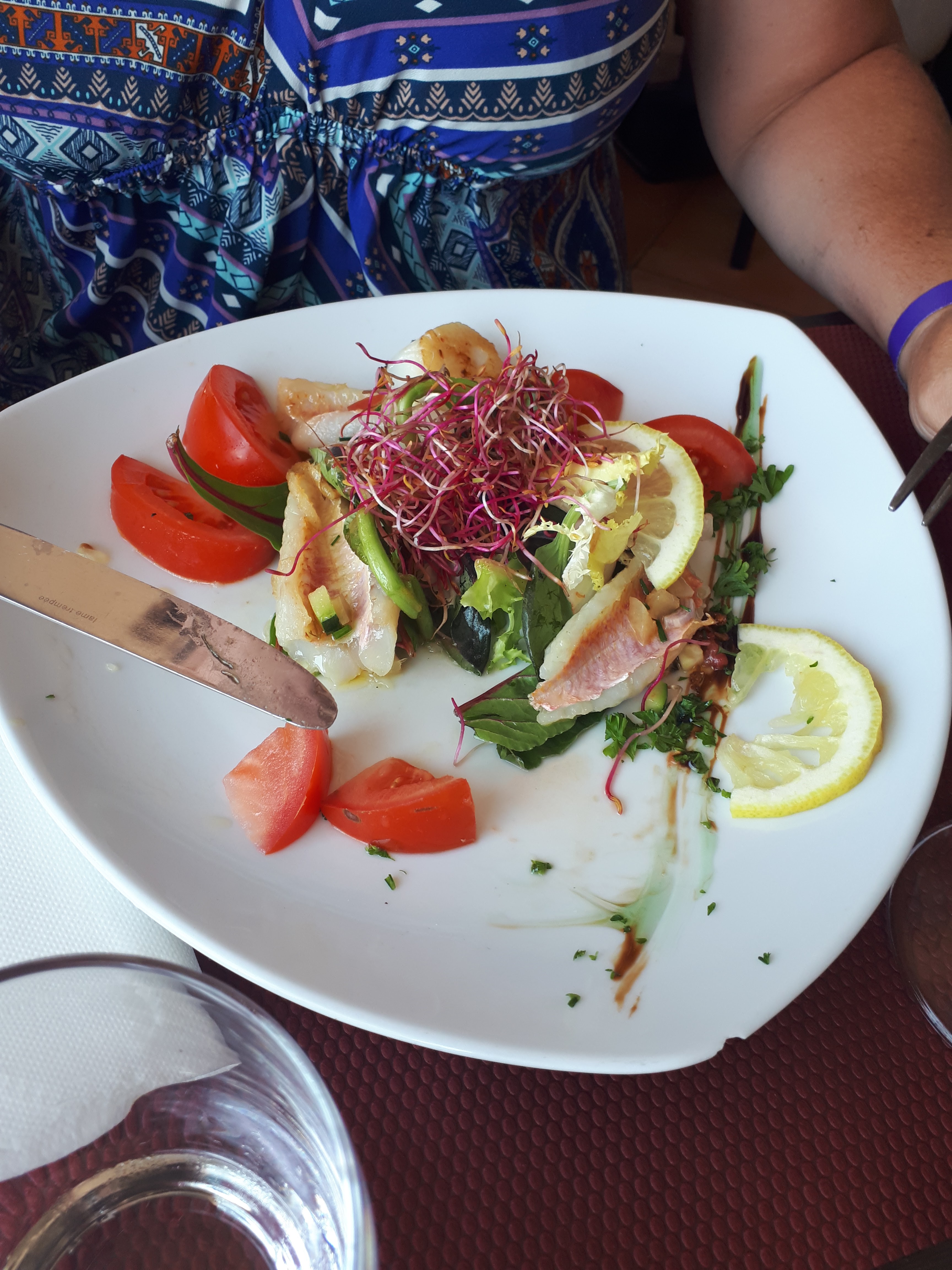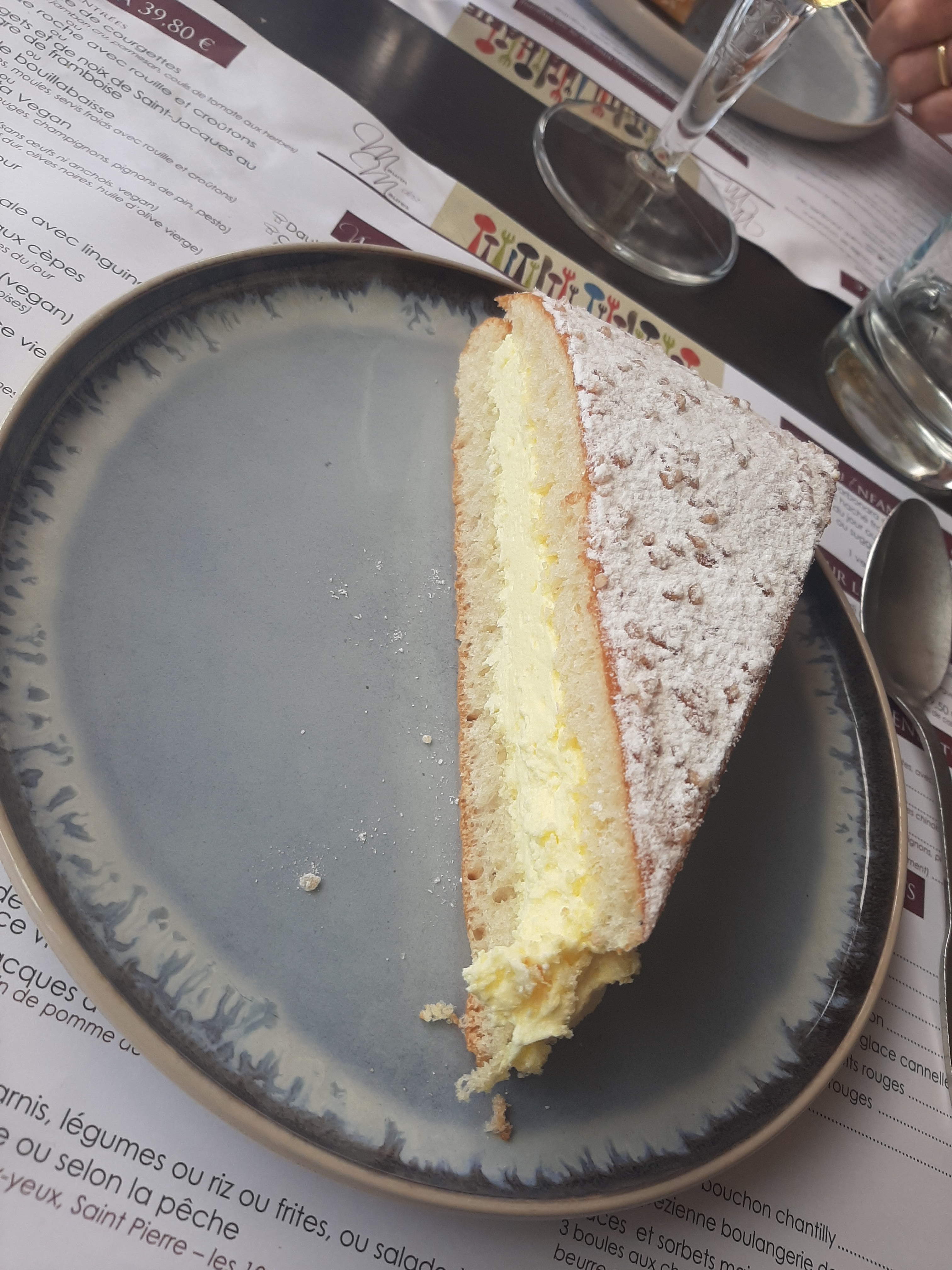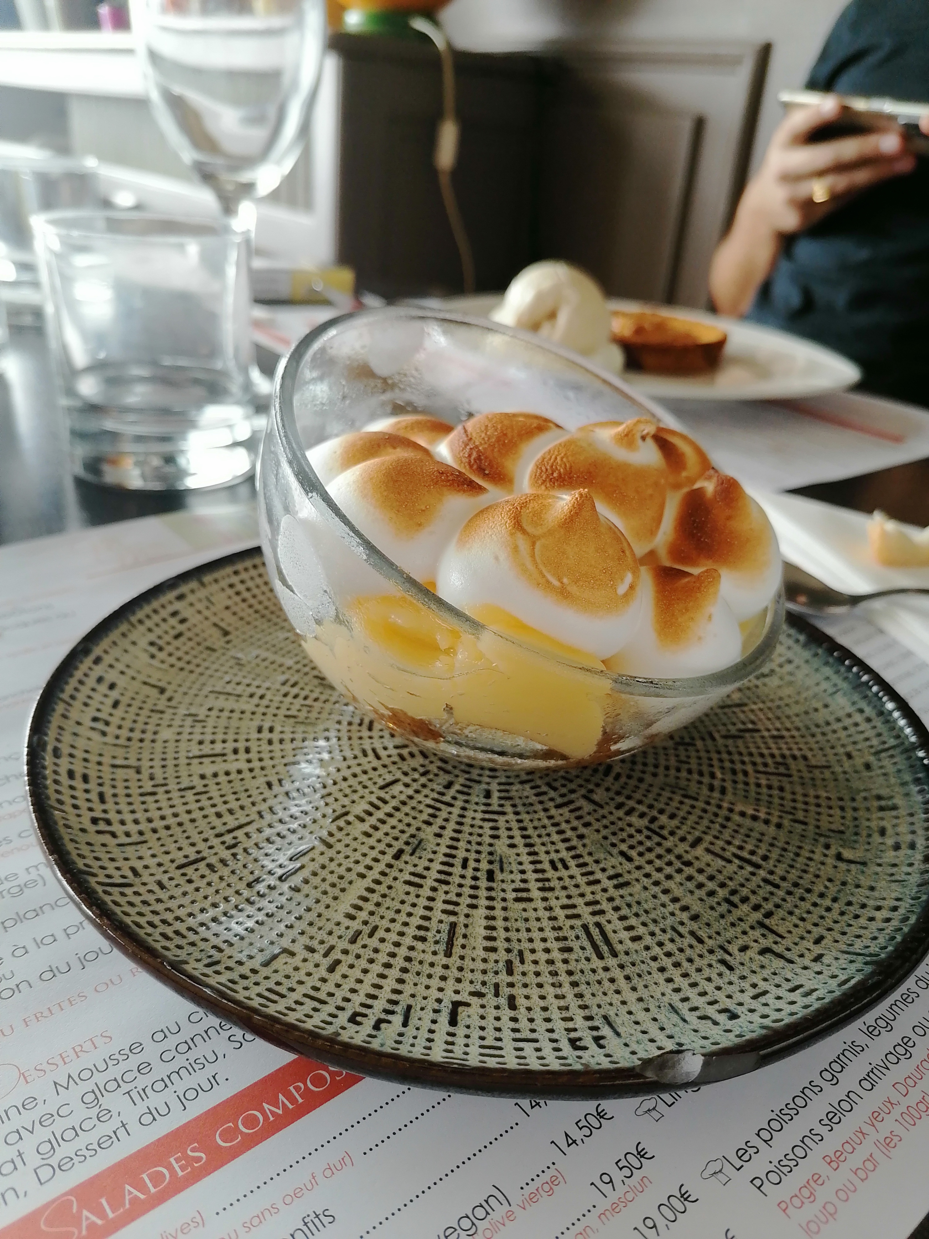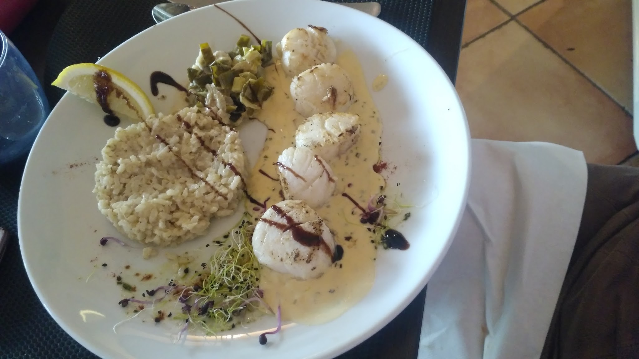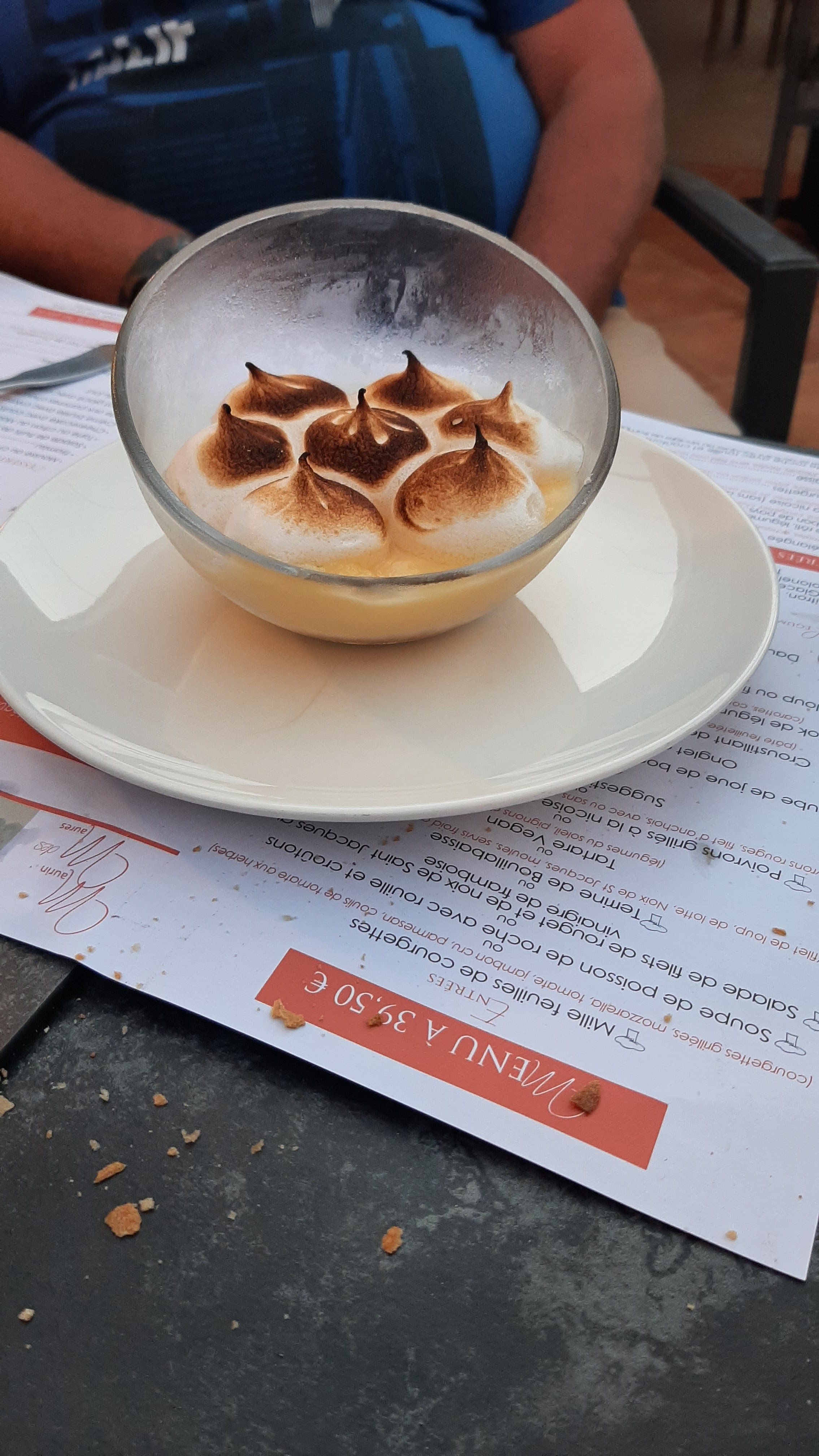 Assez déçu dans l'ensemble .pas grand chose dans l'assiette un mixte de la mer avec 2 petits filets de rougets 2 gambas et 2 toutes petites noix de st jacques avec pour accompagnement un peu de riz insipide et 1 cuillère de légumes....plat à 29€!!!! quand au dessert un baba au rhum noyé dans l'alcool avec une chantilly recouverte de trop de fruits confits trop c'est trop !!! Ayez la main un peu plus légère... Quand au service c'est très expéditif....