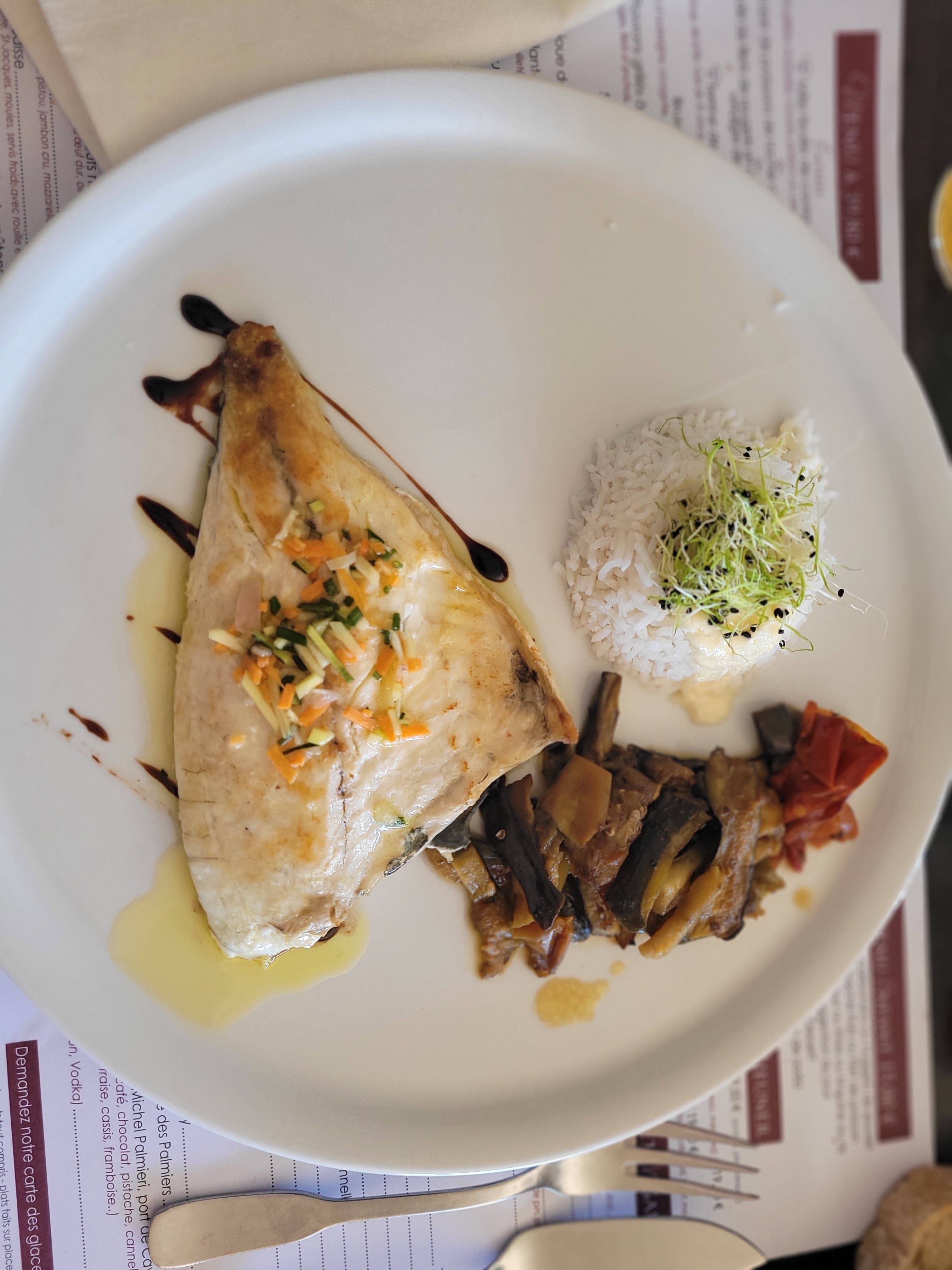 Le poisson du jour un pur délice !!! Un service et une cuisine de qualité !!