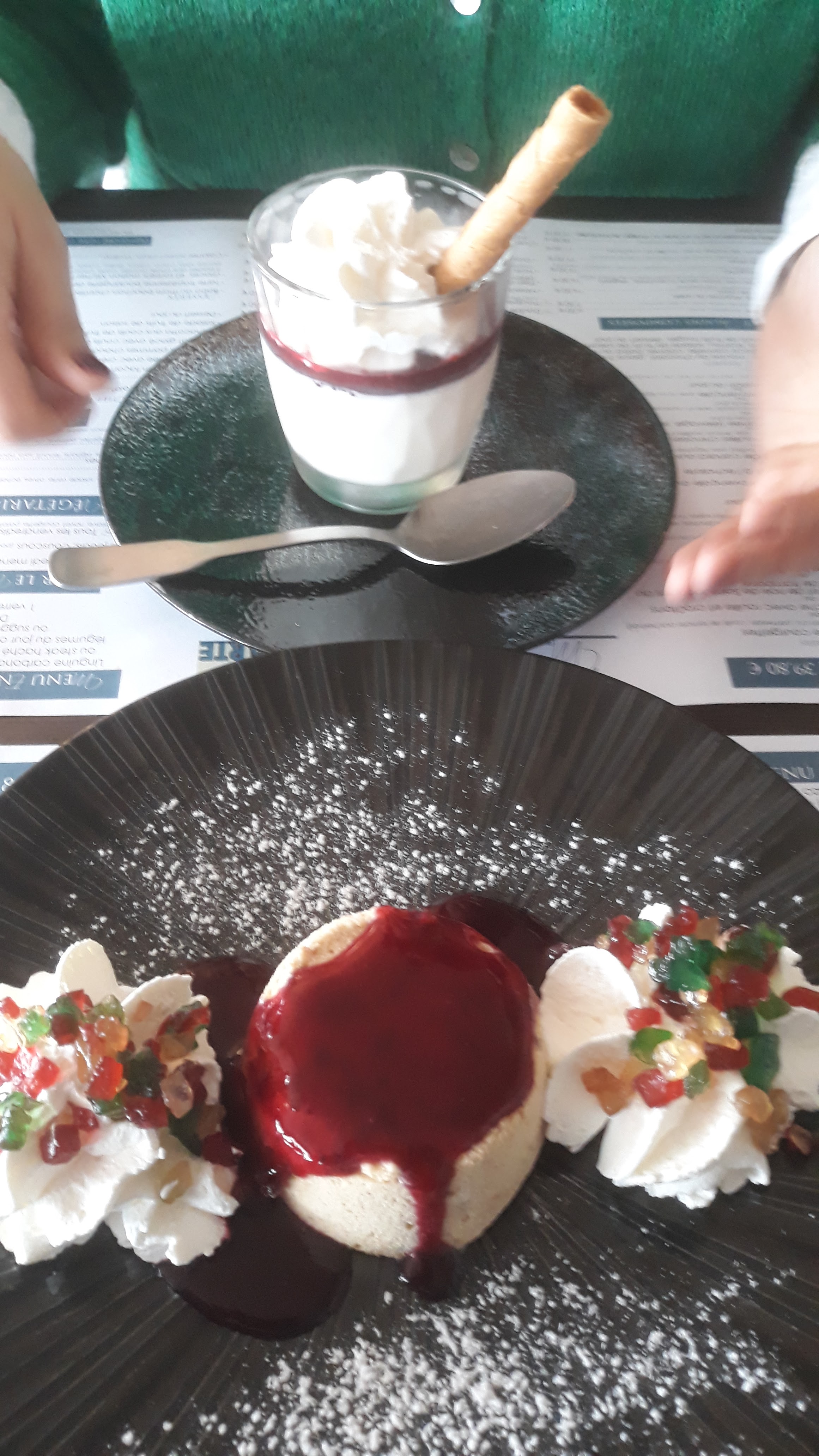 Nous n'avons pas pu prendre un menu complet vu notre arrivée tardive (avant 21h) mais on nous a quand même servi un plat et un dessert. Le service était rapide et les plats très bons et copieux. L'esthétique dans l'assiette était de rigueur et félicitation au chef. C'est un bon restaurant et le seul ouvert donc le prix va avec les plats. A une prochaine.
