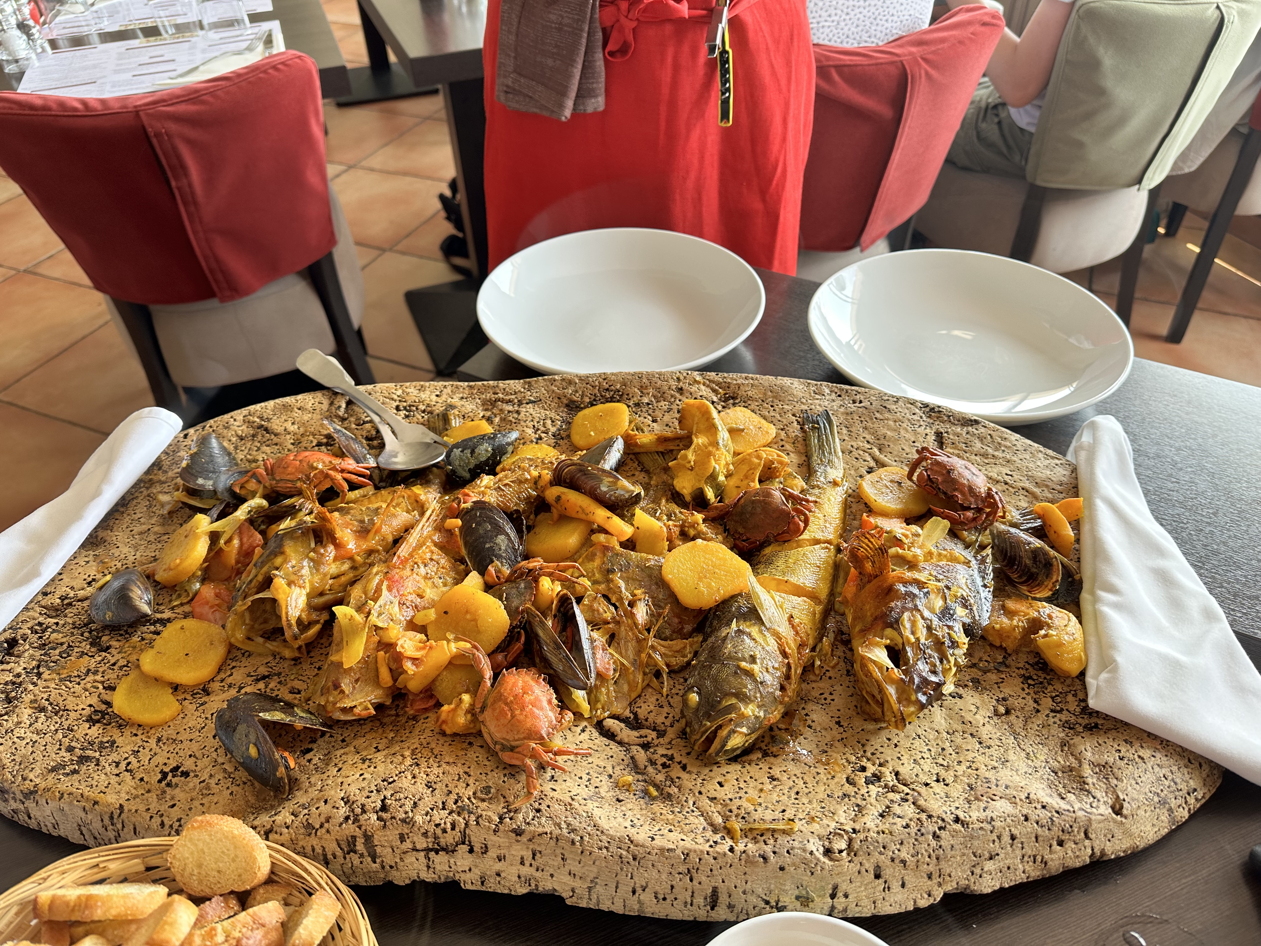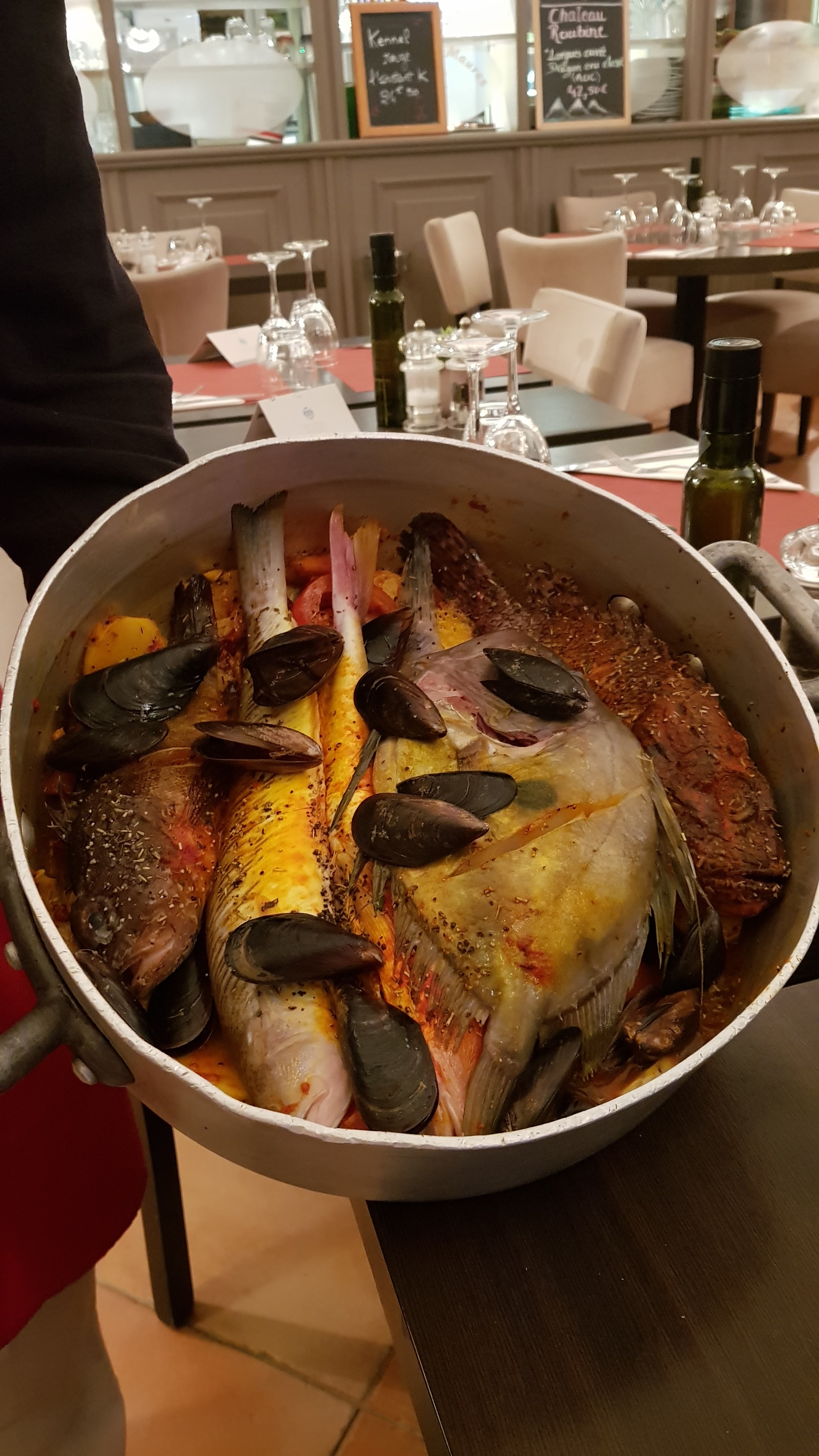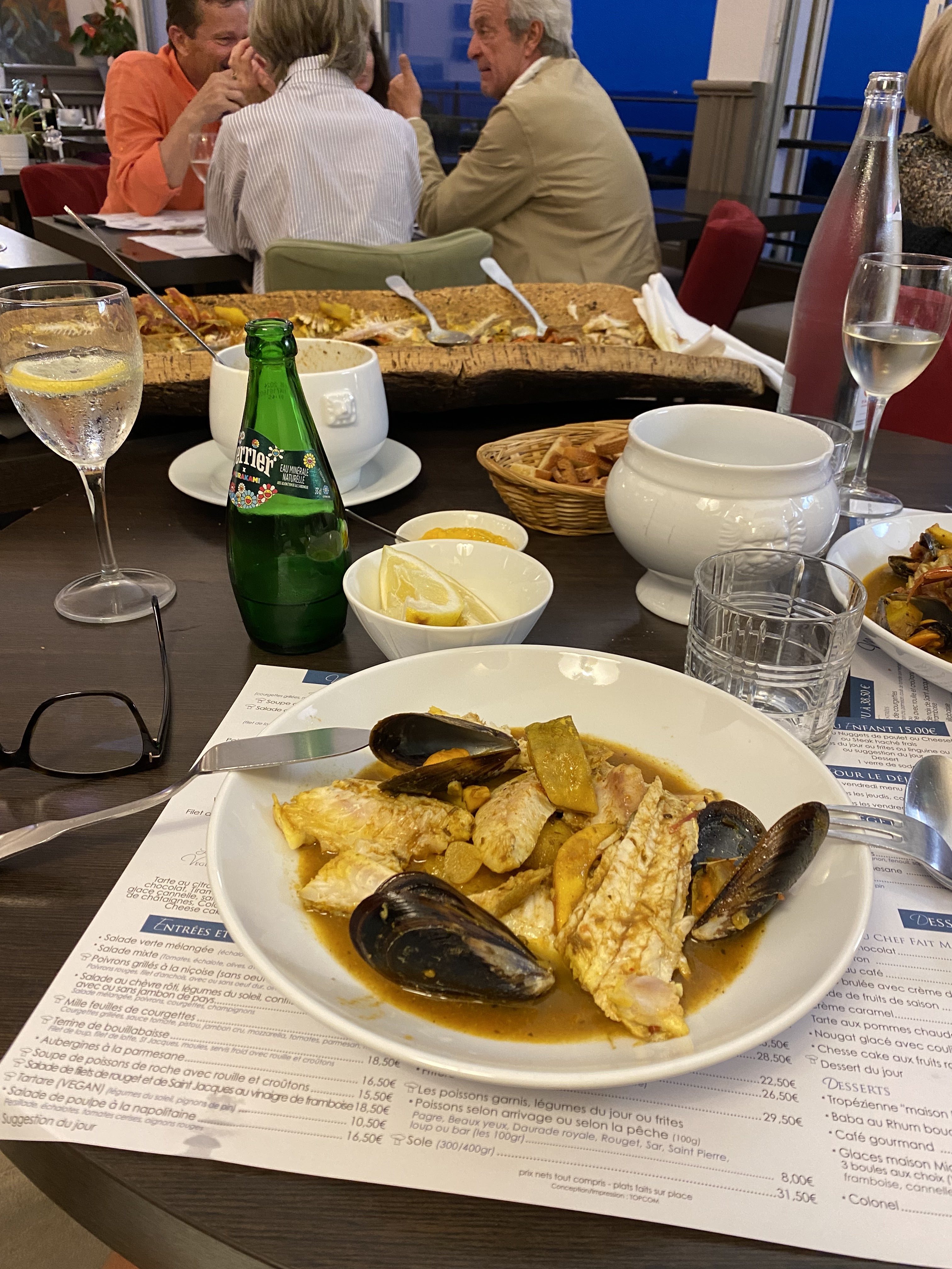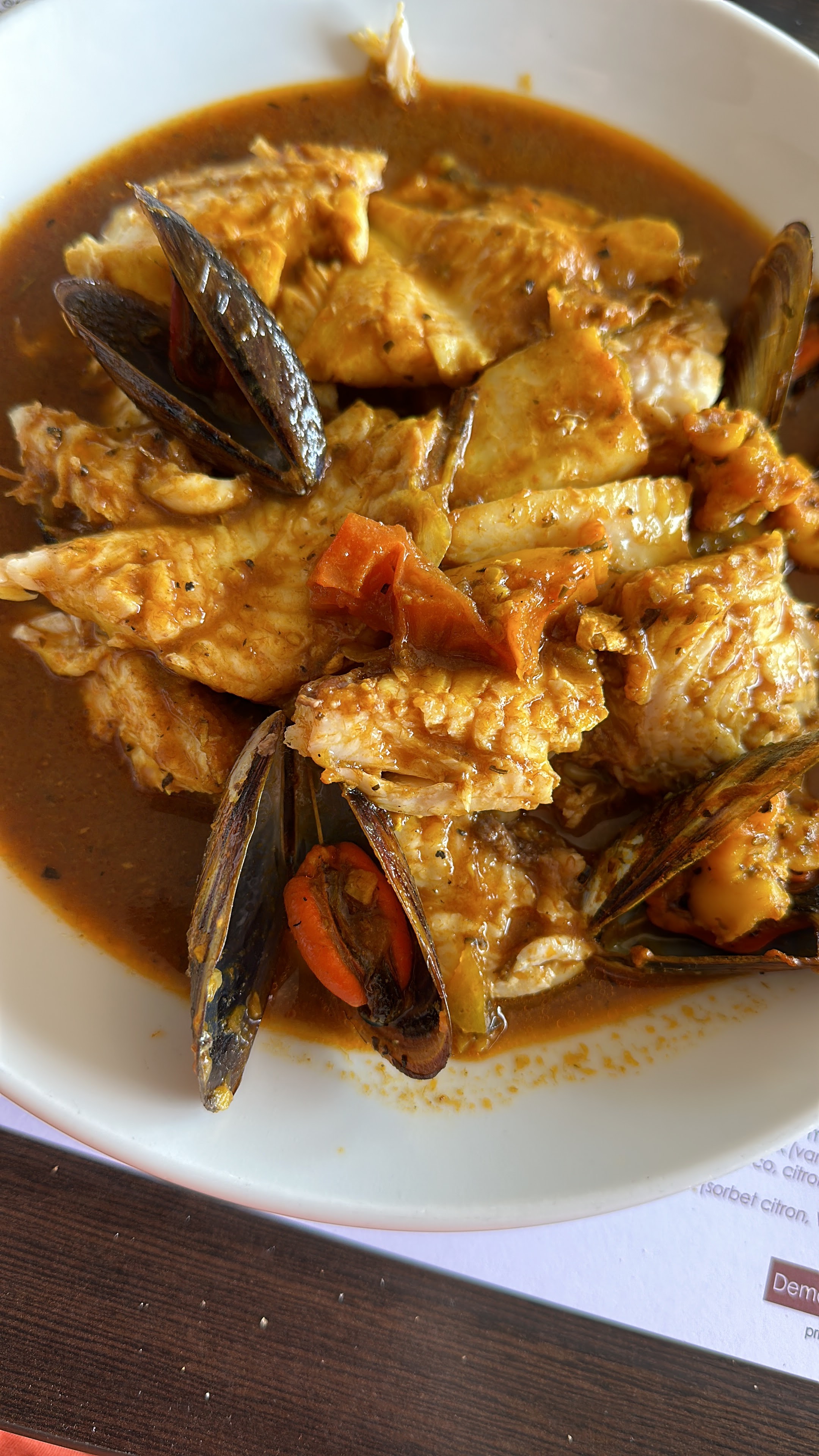 Excellente bouillabaisse. Nous nous sommes régalés. Par contre la tropezienne très sèche. Dommage. Le bémol pour le prix 78€/pers pour la bouillabaisse.
