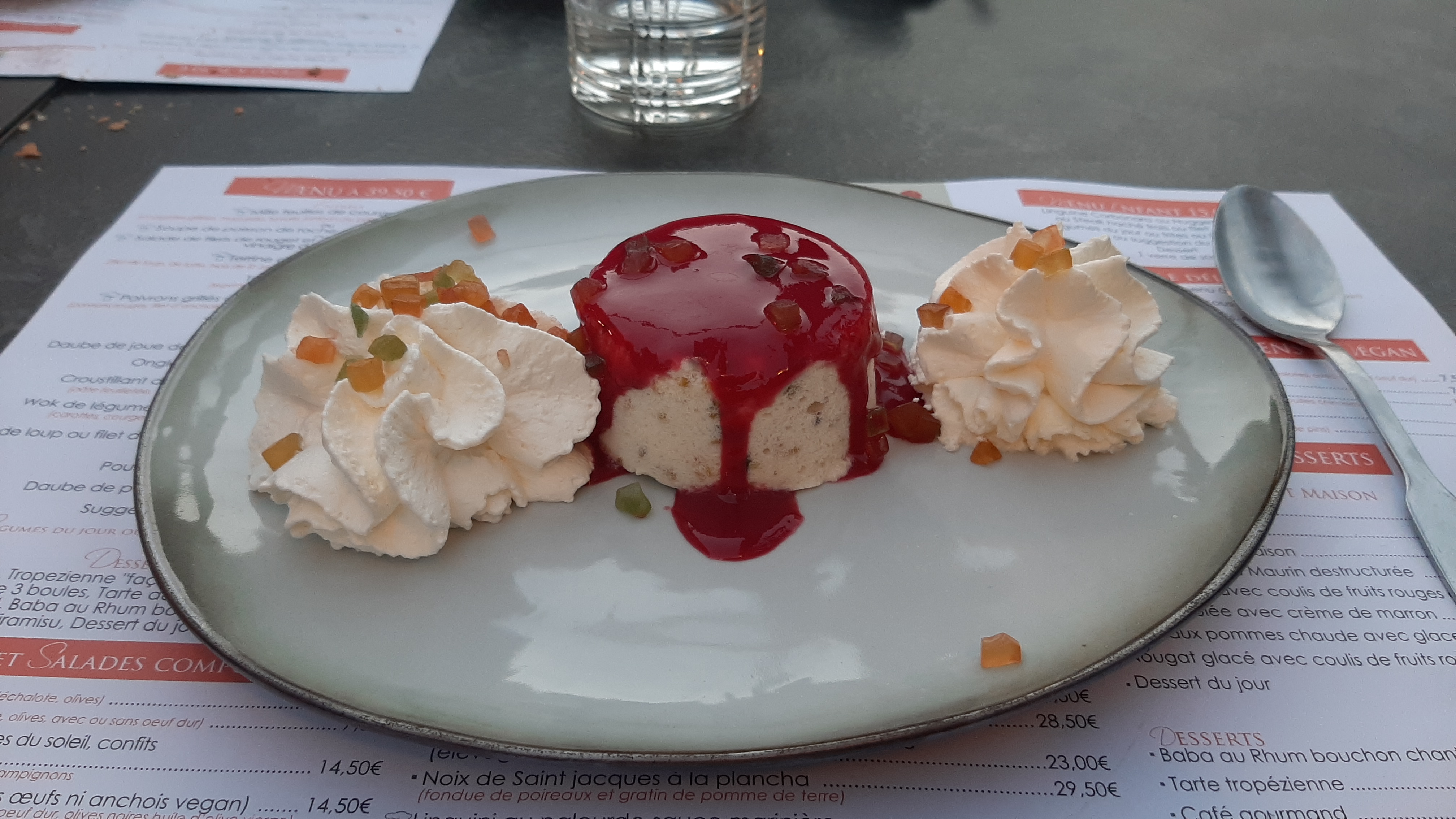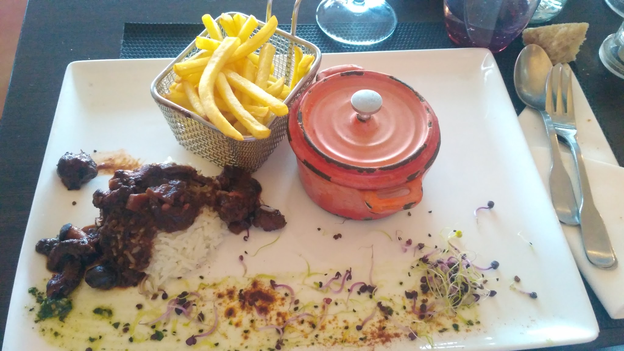 Cadre joli. Peu de quantité dans l'assiette. Souris d agneau trop sèche. C'est cher payé pour le cadre.